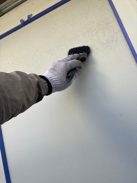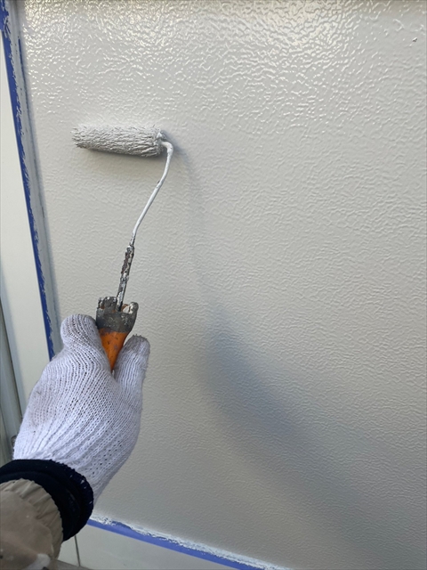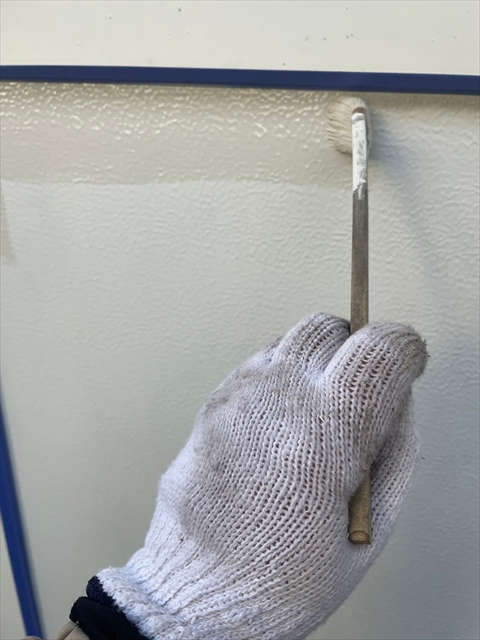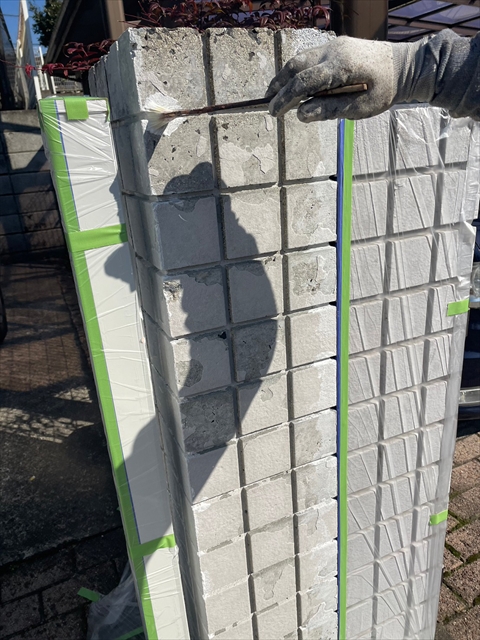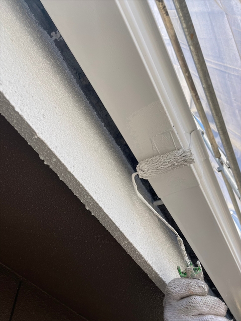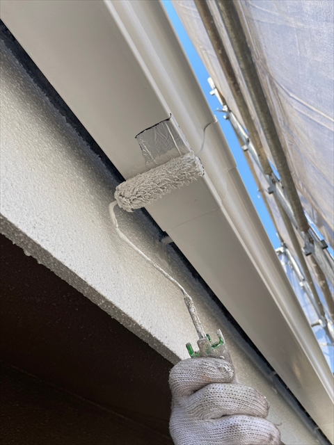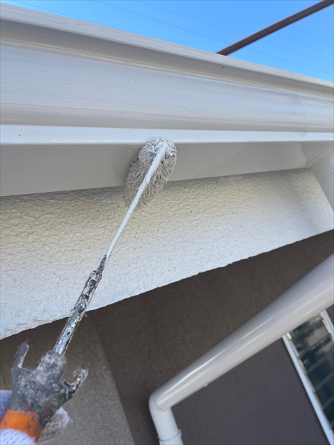本日は塀の下塗り、樋・破風仕上げ、鏡板塗装を行いました。