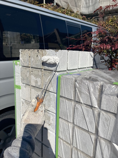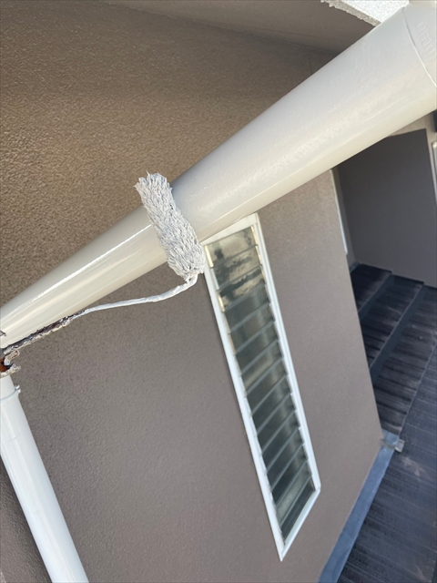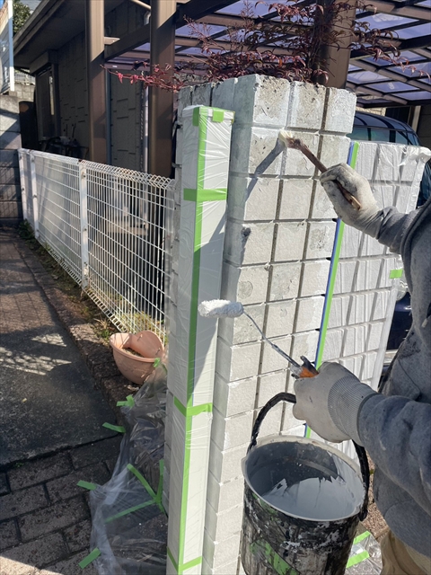 [基山町 A様邸] 塀の下塗り 樋・破風仕上げ 鏡板塗装