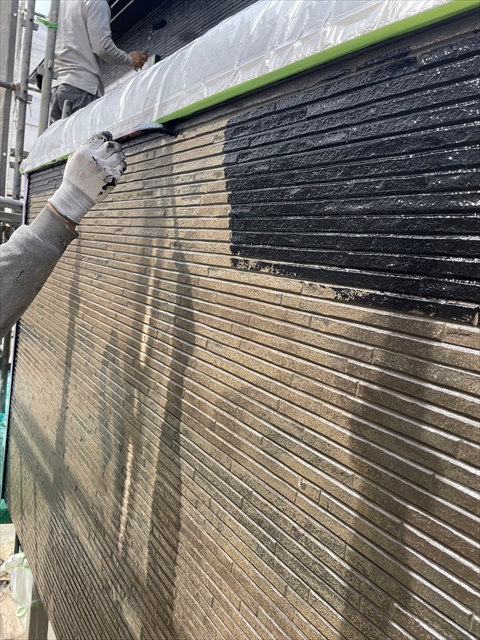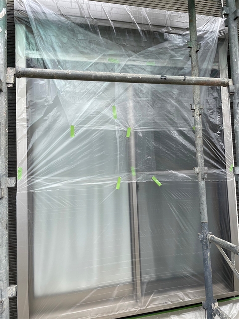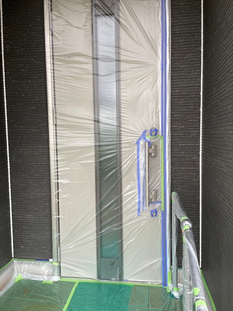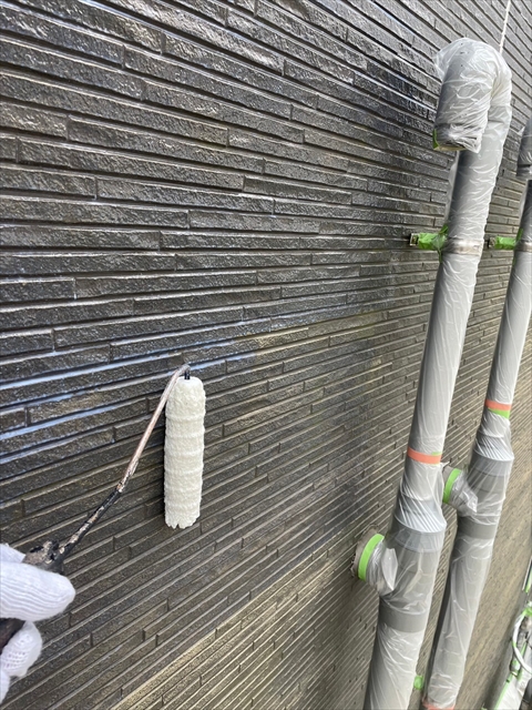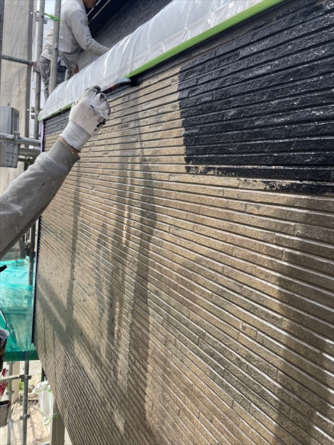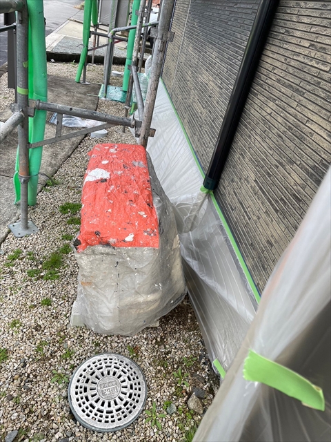 [久留米市 S様邸] 養生 壁の下塗り・中塗り・上塗り