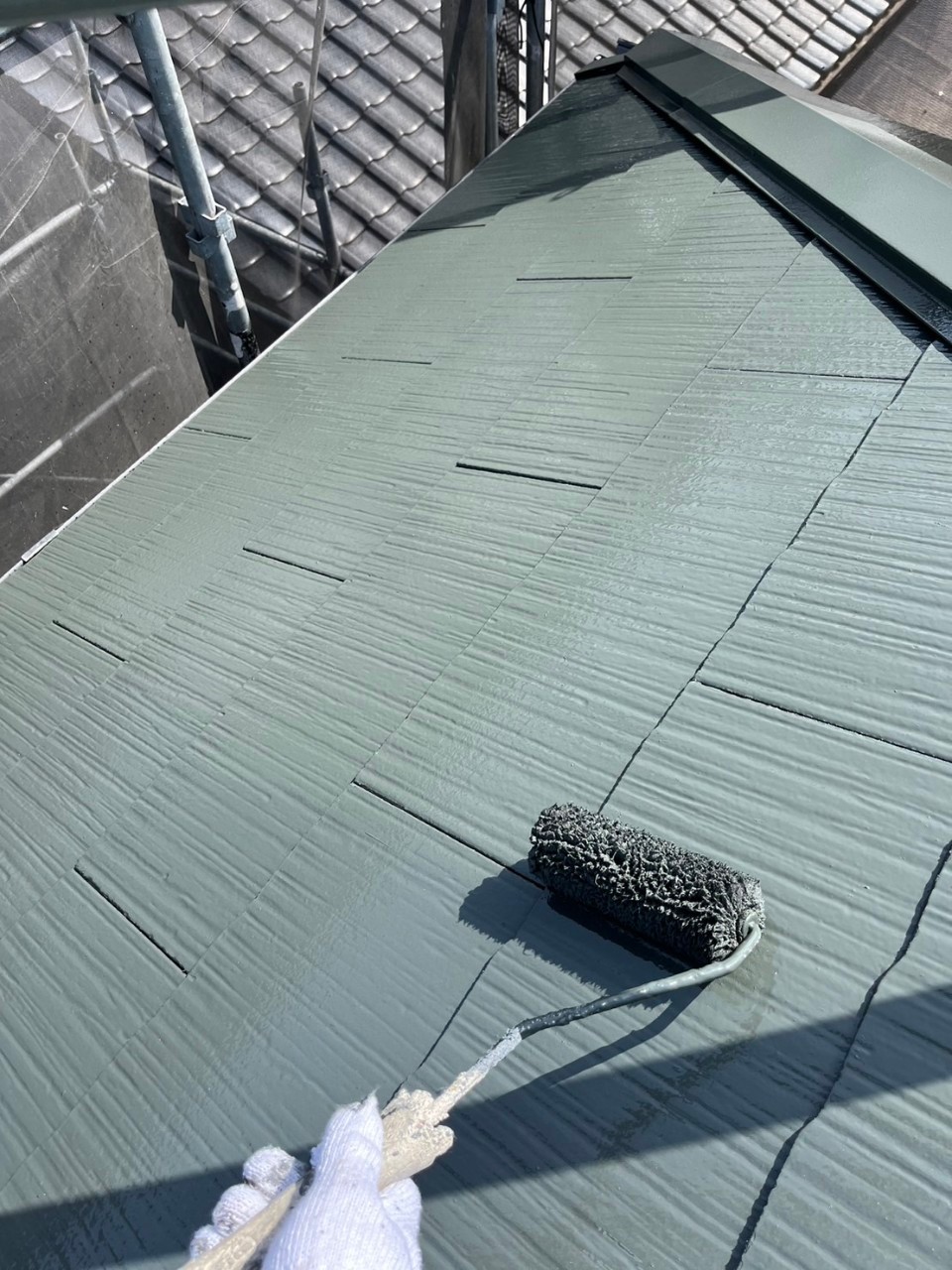 本日は屋根の上塗り、付帯部塗装を行いました。