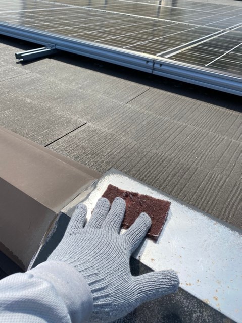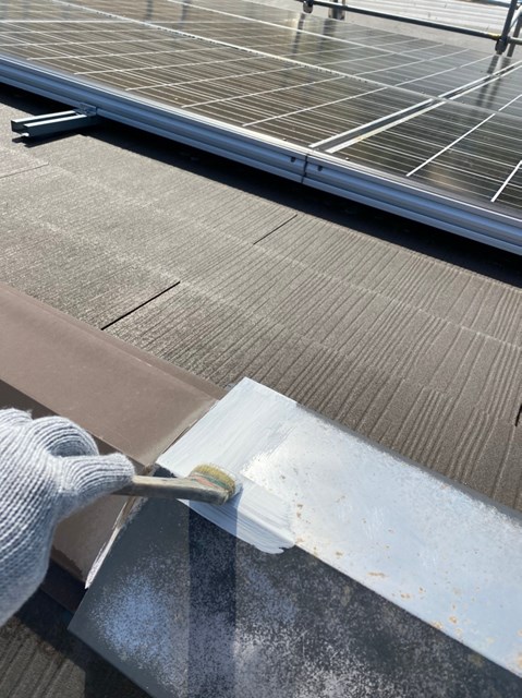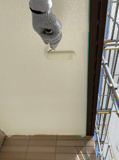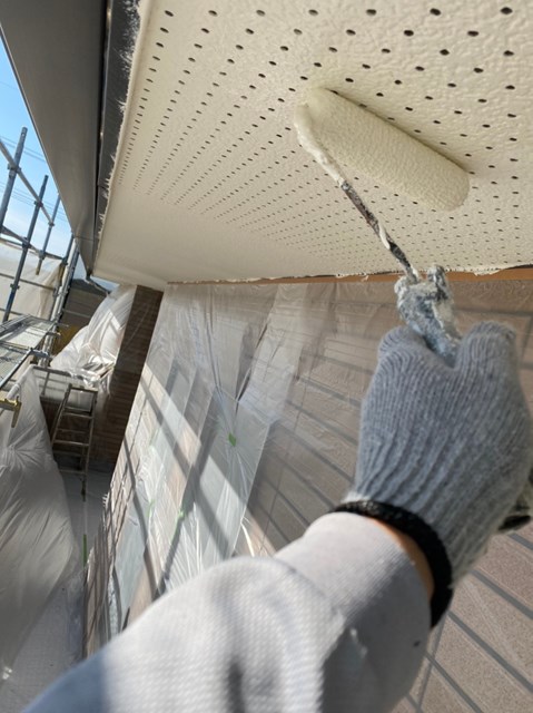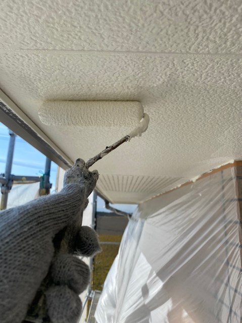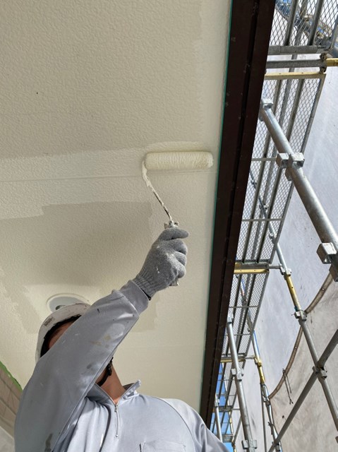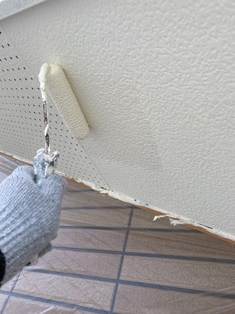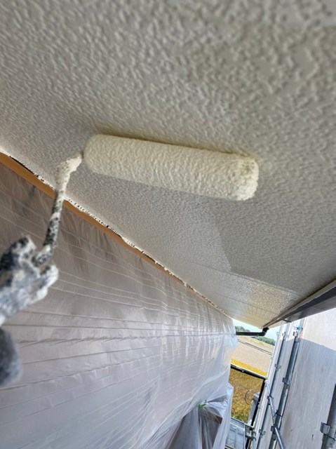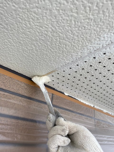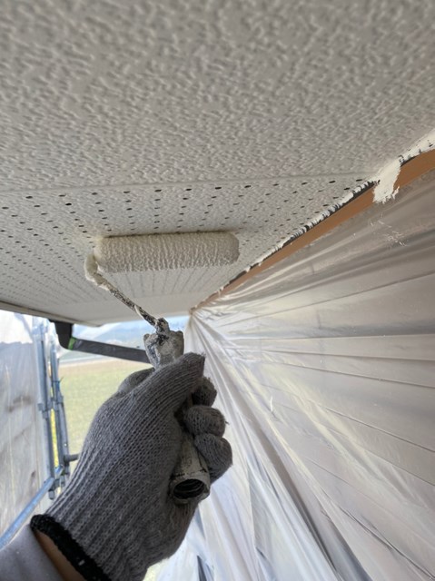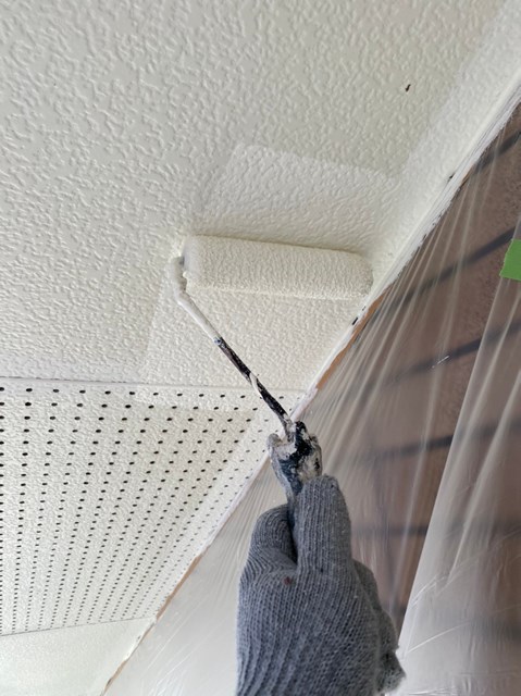 みやま市 Y様邸 下地処理 軒天防カビ塗布2回塗状況