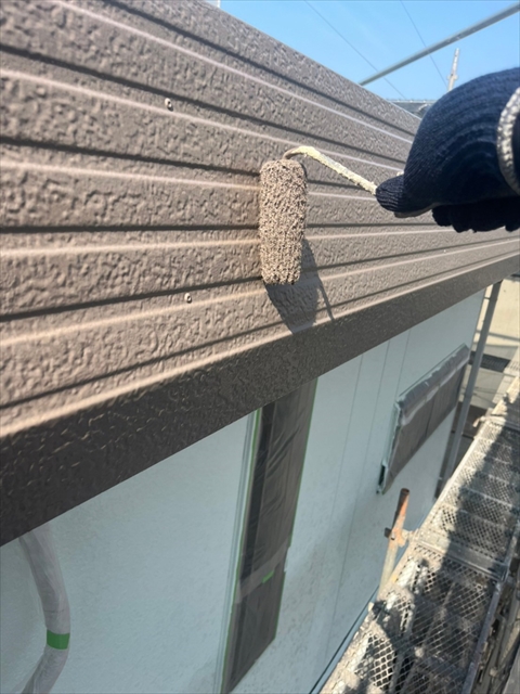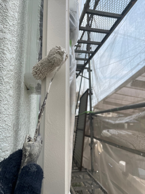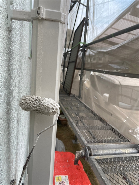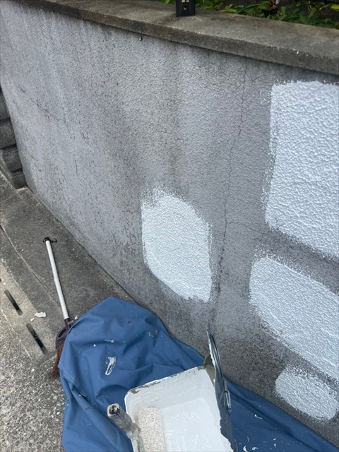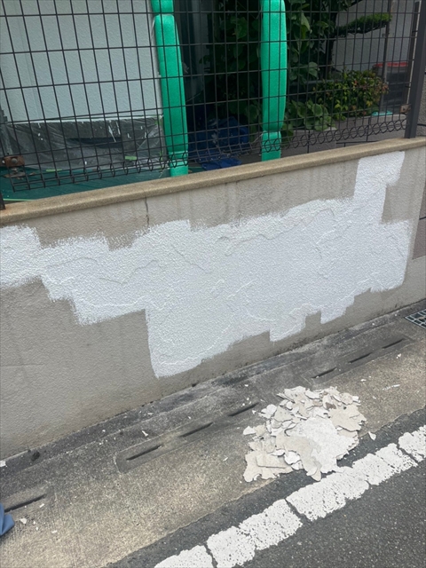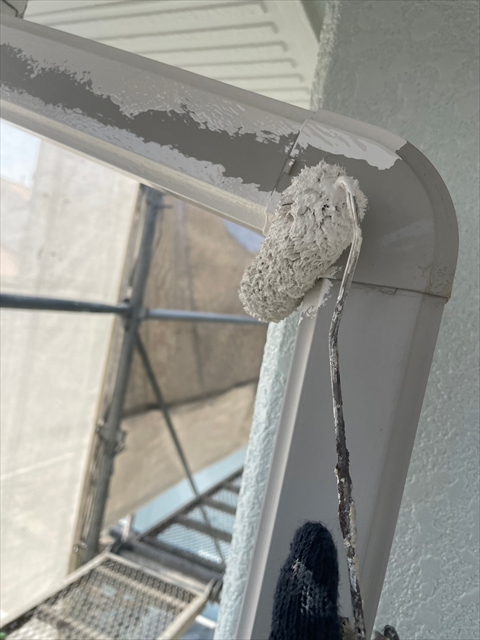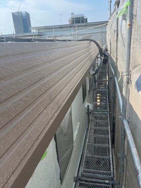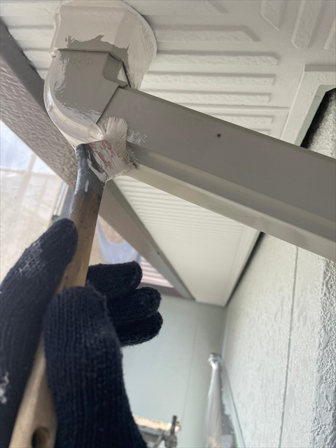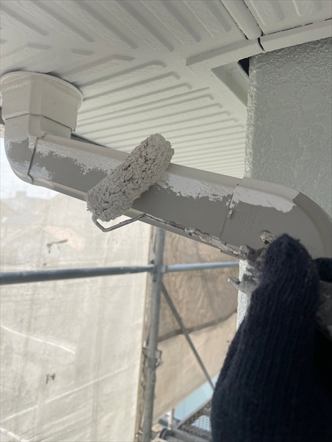 本日は竪樋・パラペットの塗装、外構のケレン・下地タッチアップを行いました。