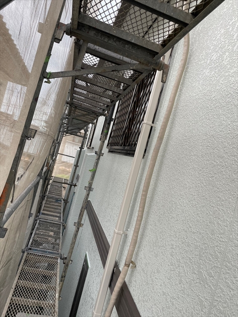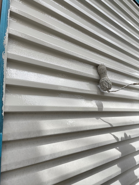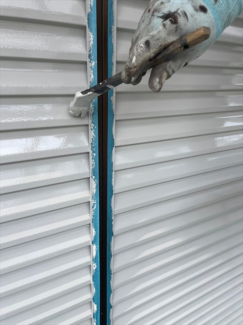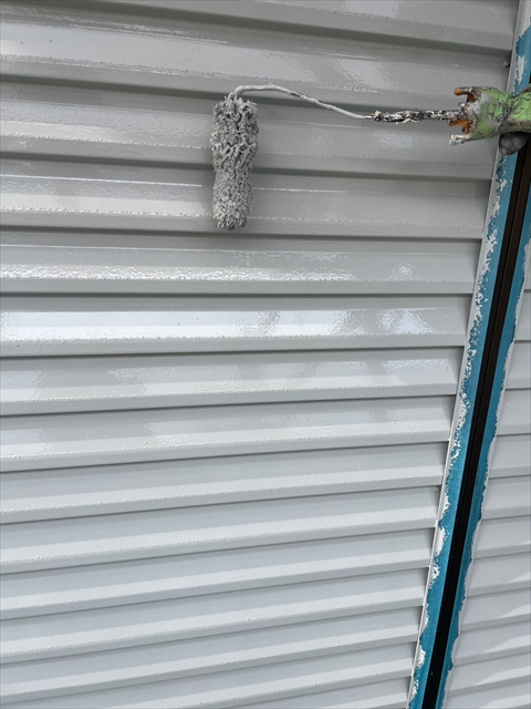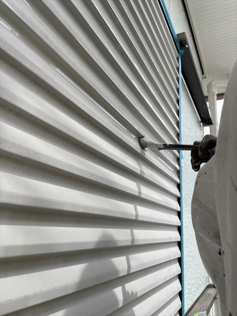 本日は壁の上塗り、雨戸、養生剥ぎを行いました。