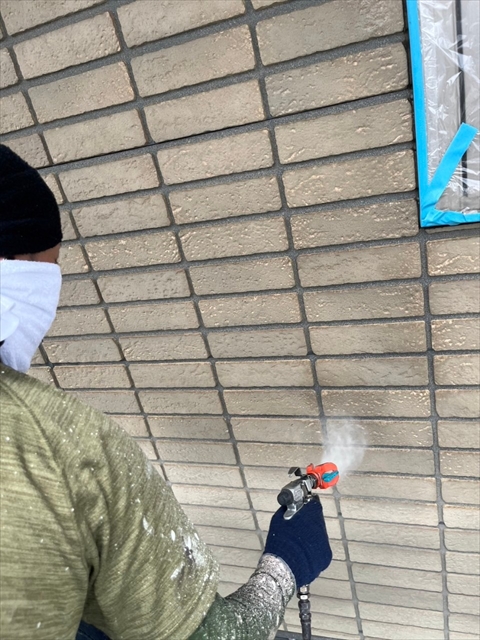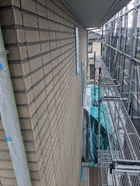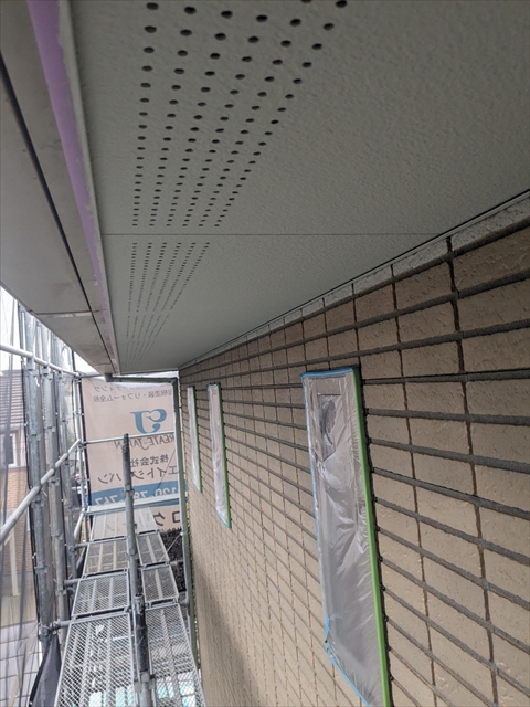 本日は外壁の下塗り(1回目・2回目)、軒天塗装を行いました。