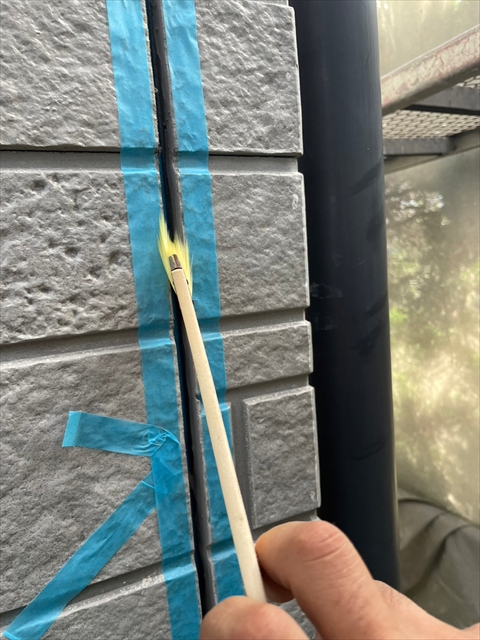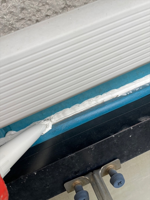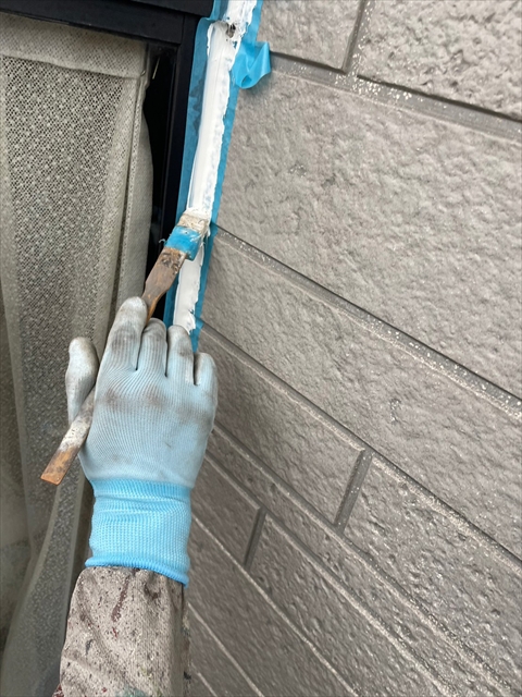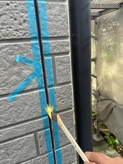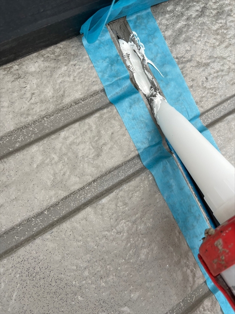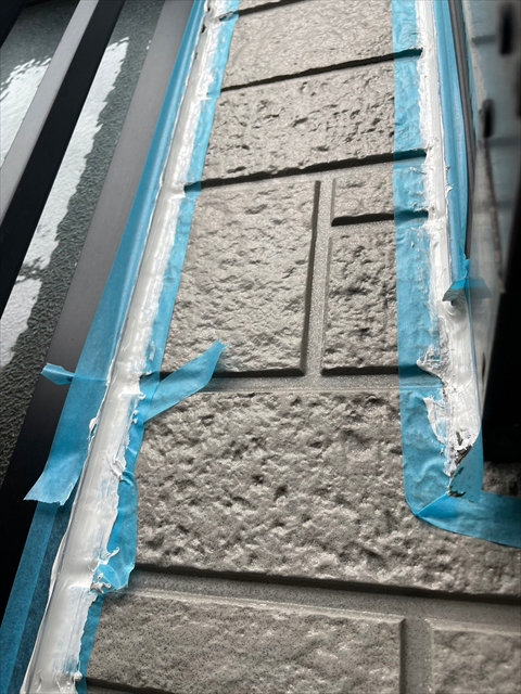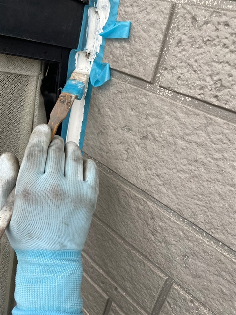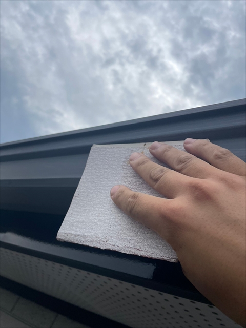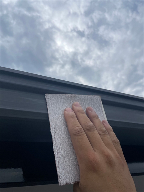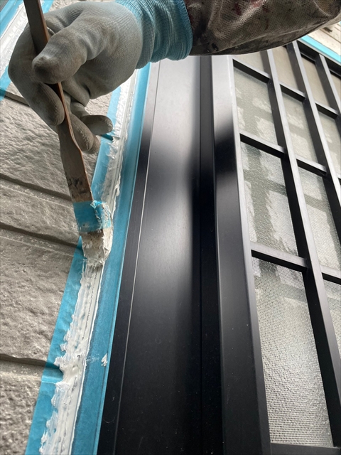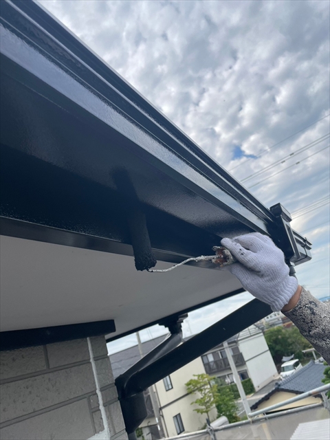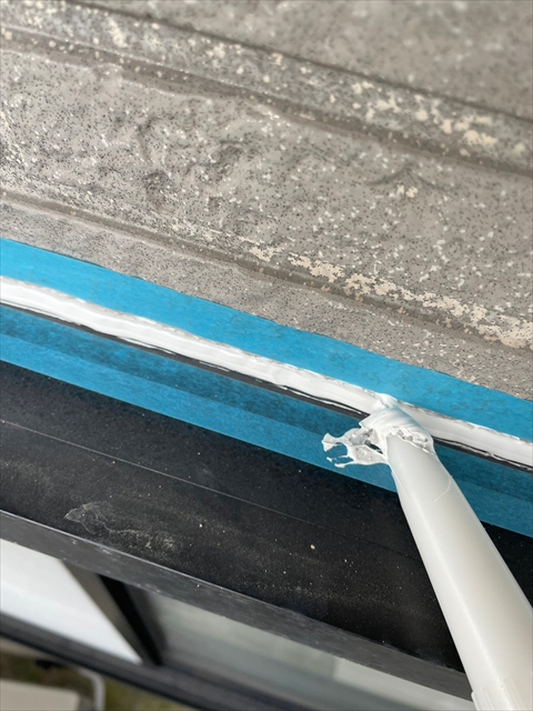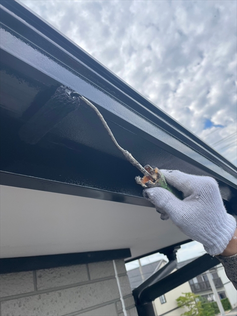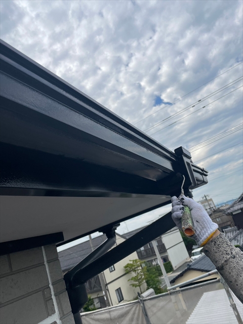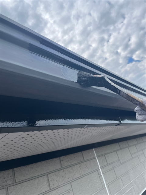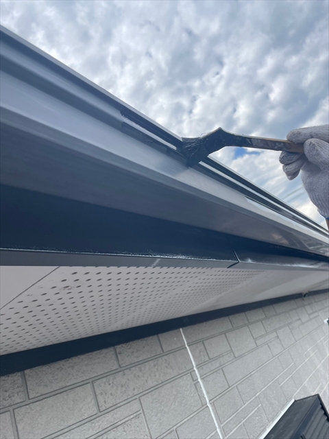 本日はシーリング、軒樋・破風塗装を行いました。