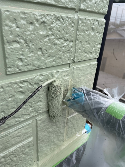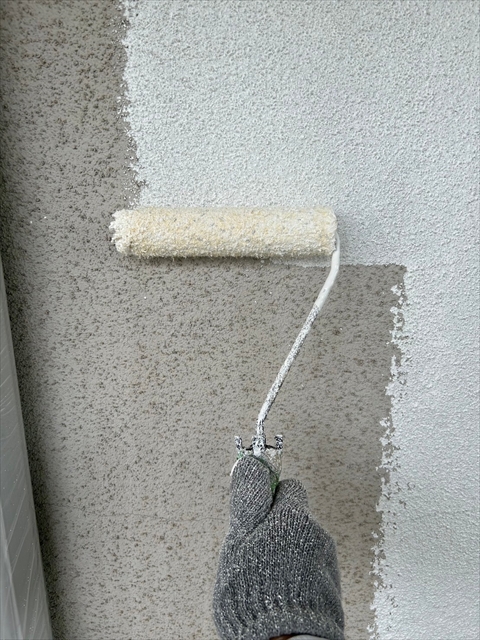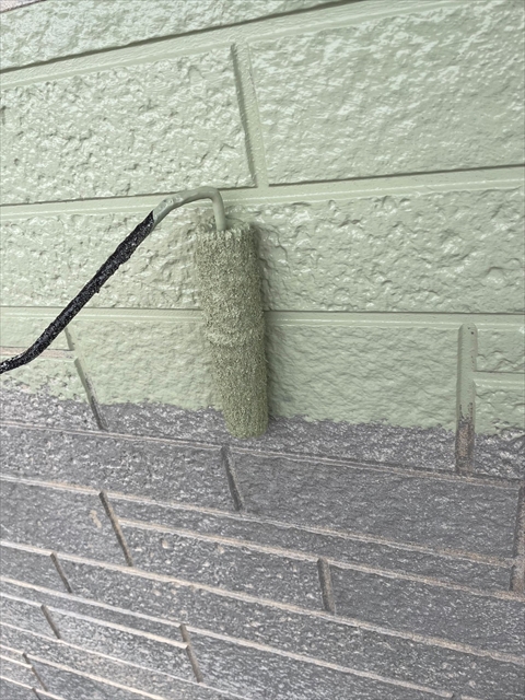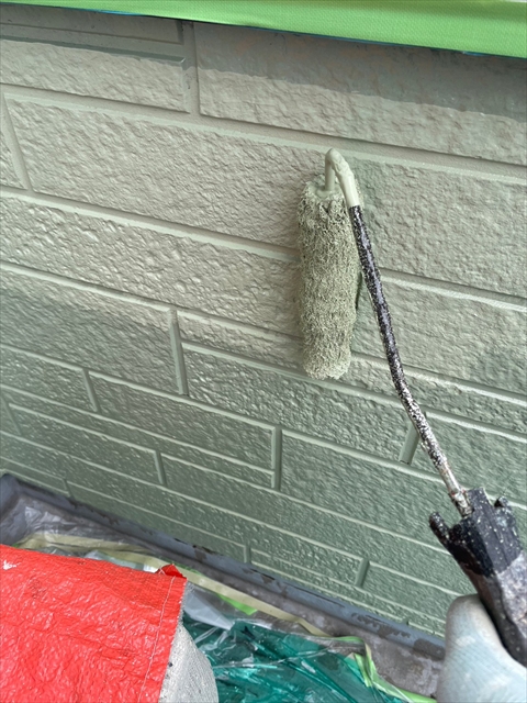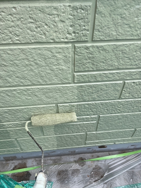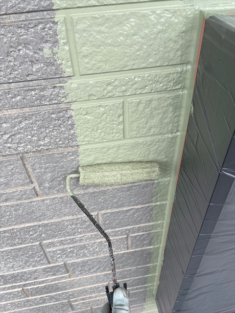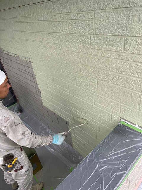 本日は裏面モルタル壁の下塗り・上塗り、外壁の中塗り・上塗りを行いました。
