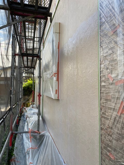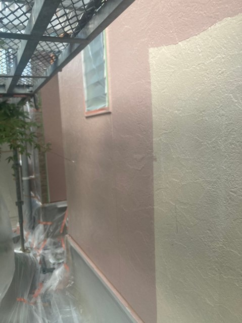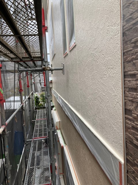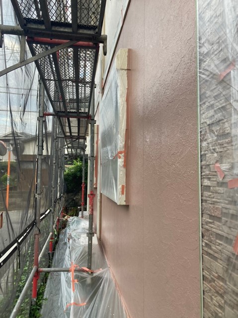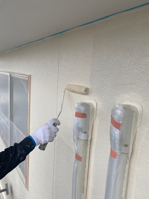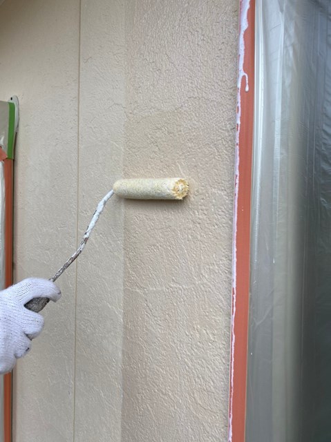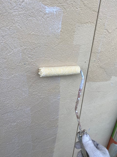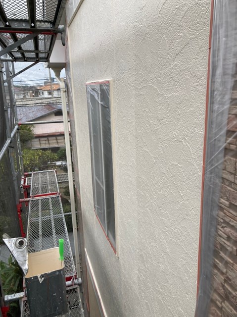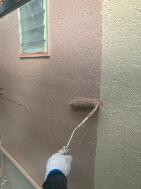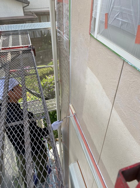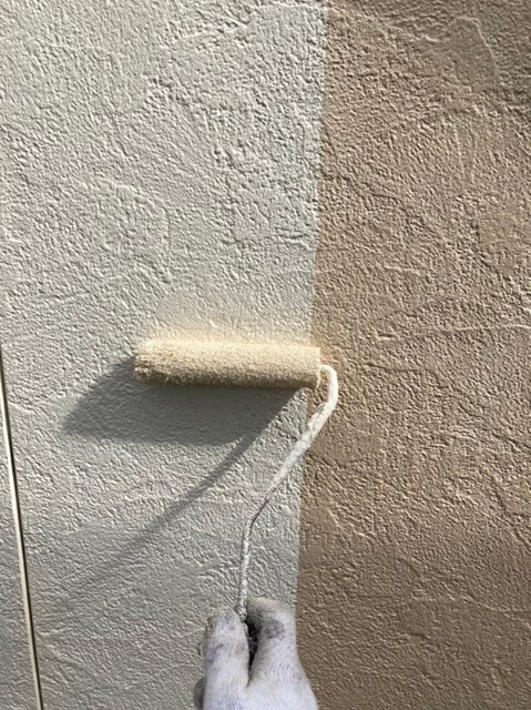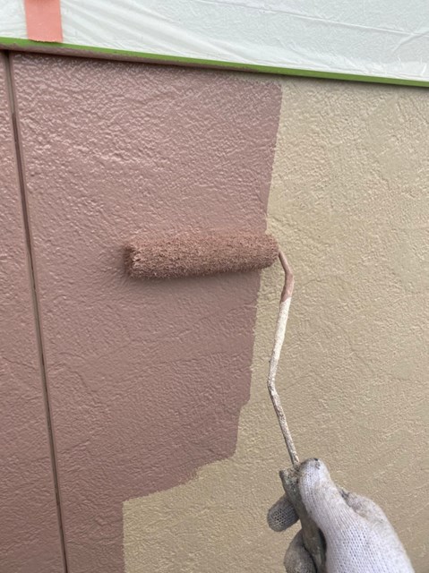 中塗りは上塗りの際に塗り残しを無くす為に、色替え工法で施工しており上塗りよりも少し明るい色で施工しています。