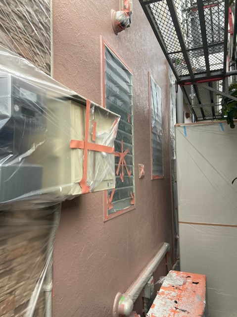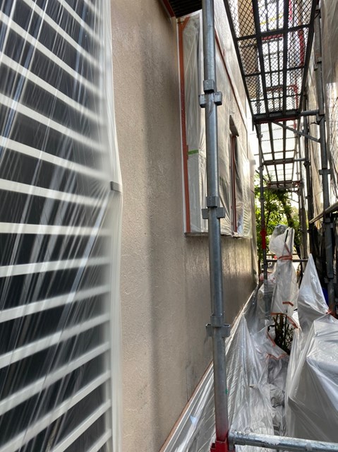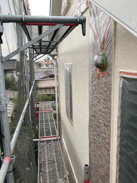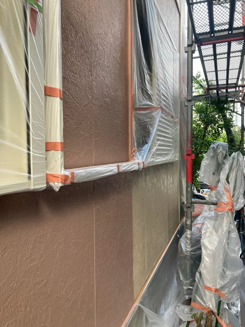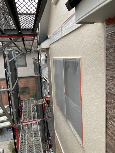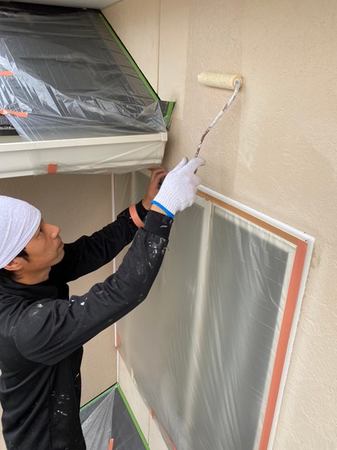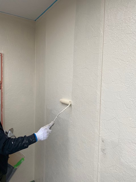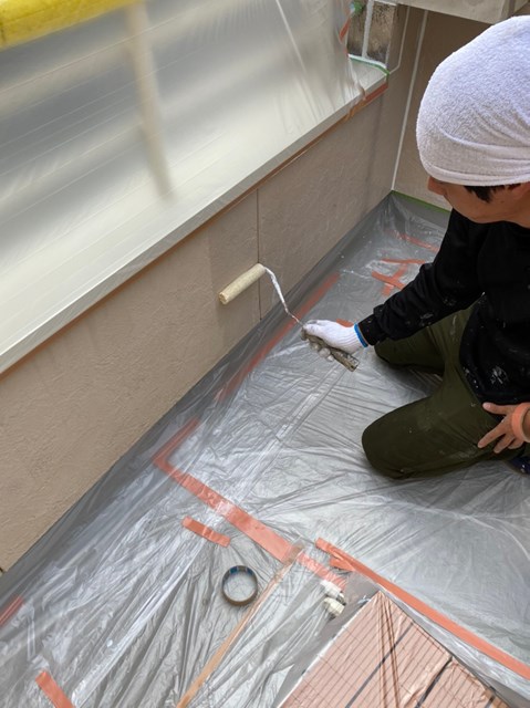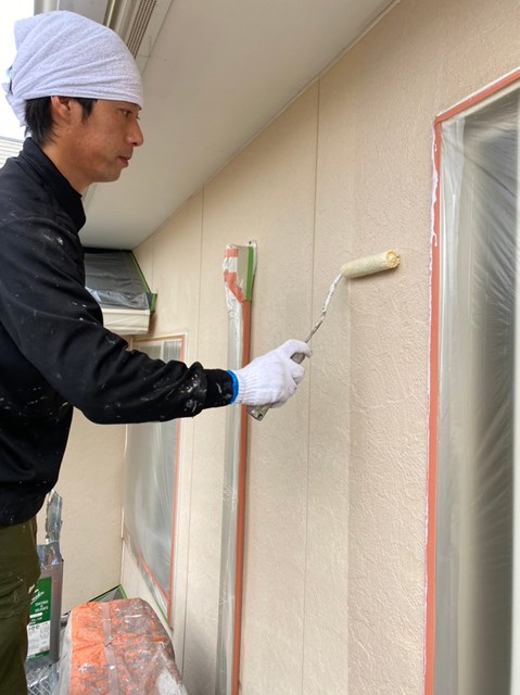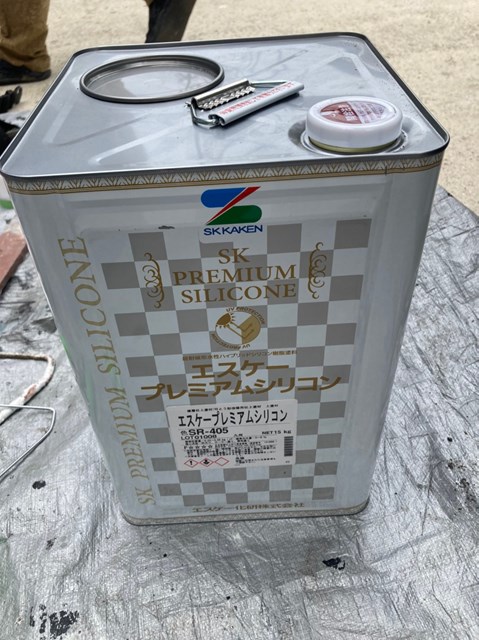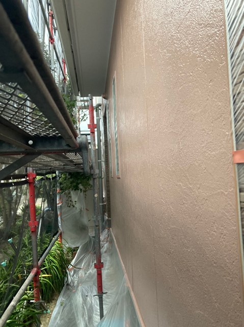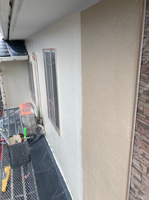中塗りは上塗りの際に塗り残しを無くす為に、色替え工法で施工しており上塗りよりも少し明るい色で施工しています。