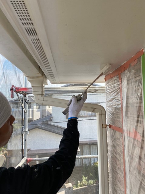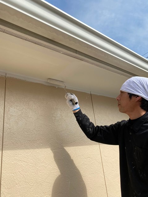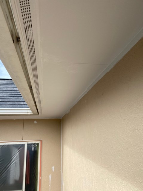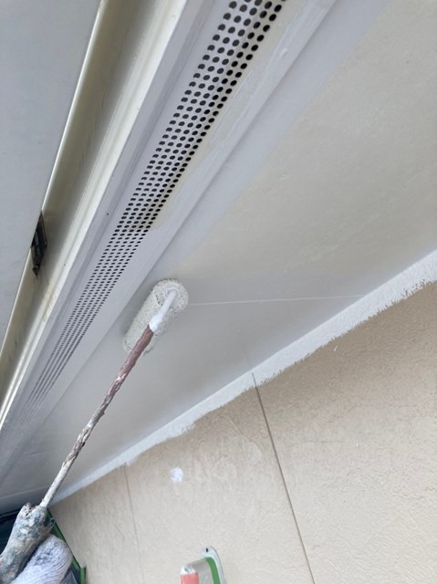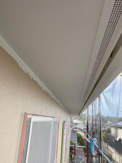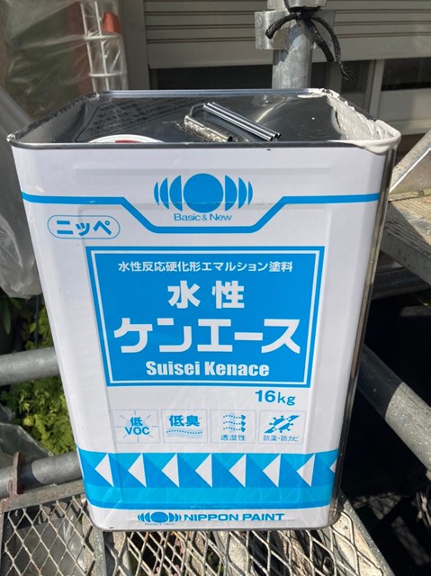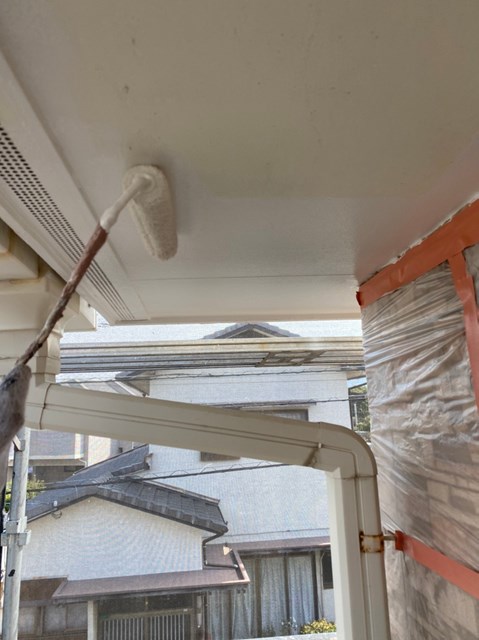 軒天井に使用した水性ケンエースは、防カビ・防藻成分を配合した軒天専用塗料です。