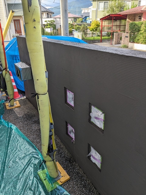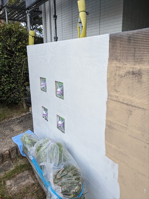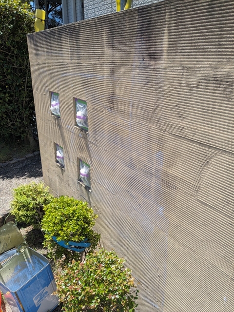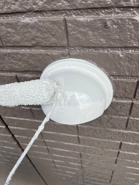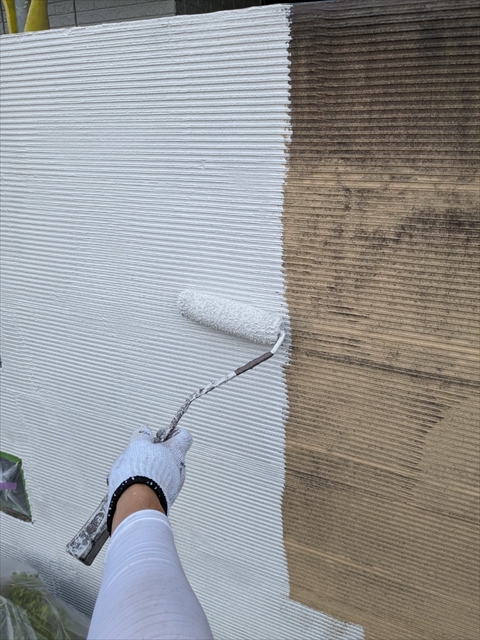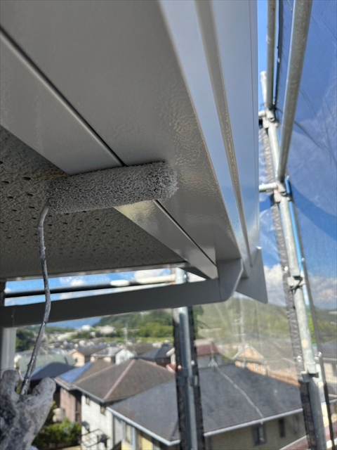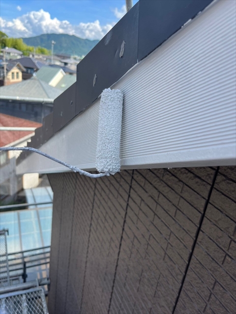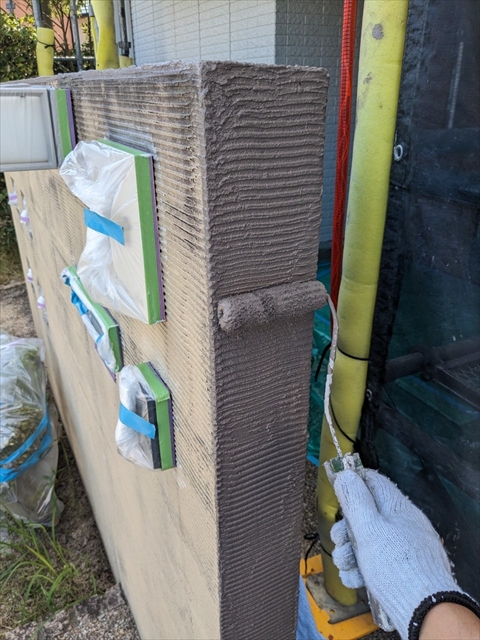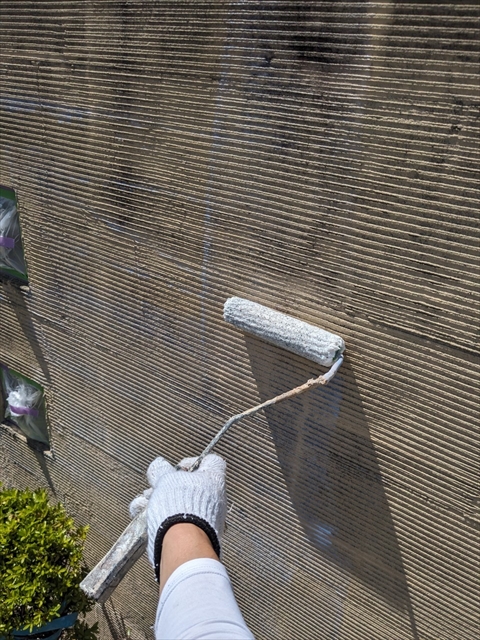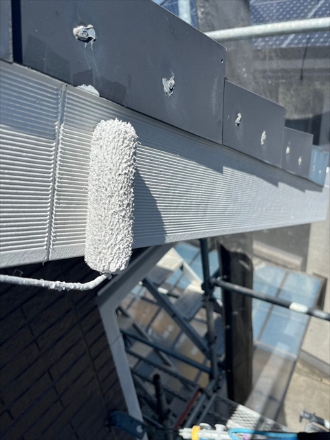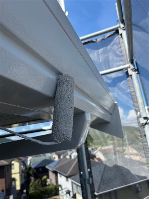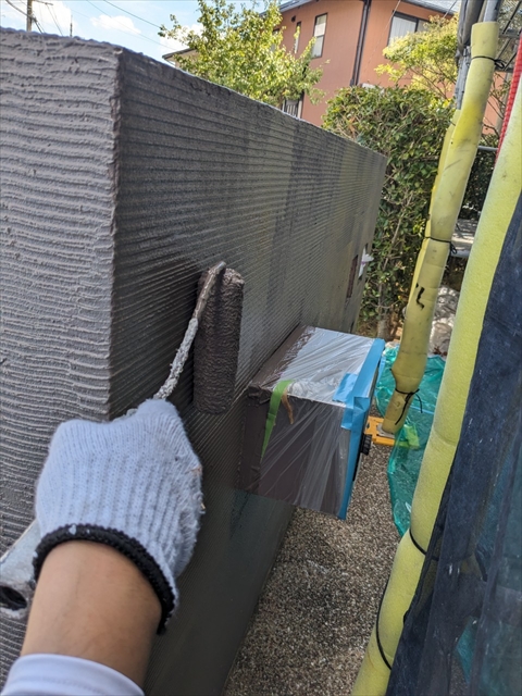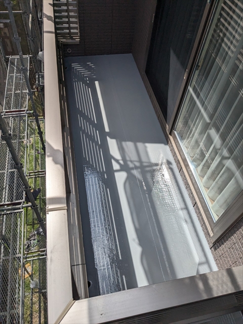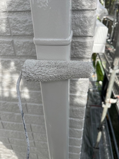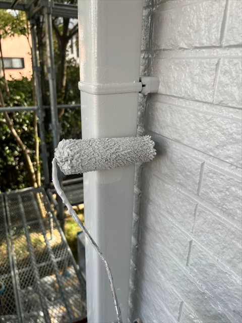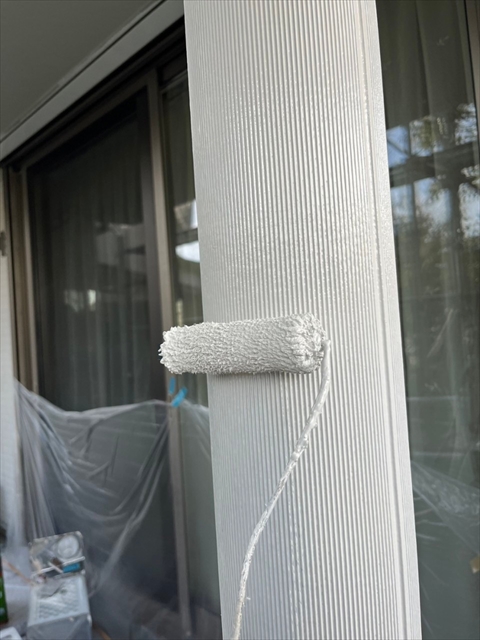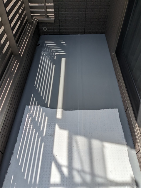 本日は付帯部塗装、バルコニー床のトップコート、門柱の塗装を行いました。