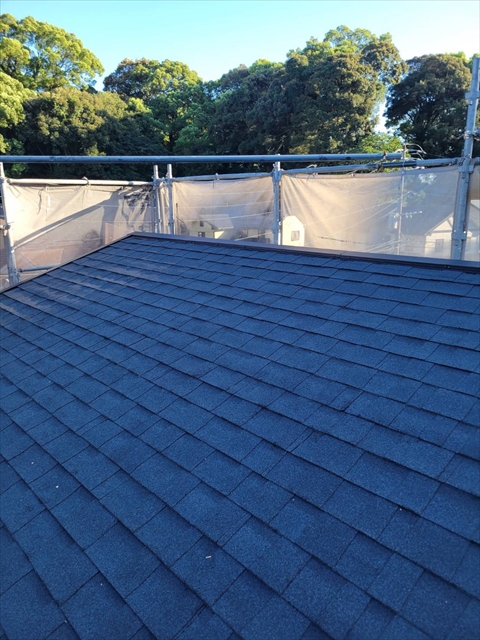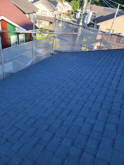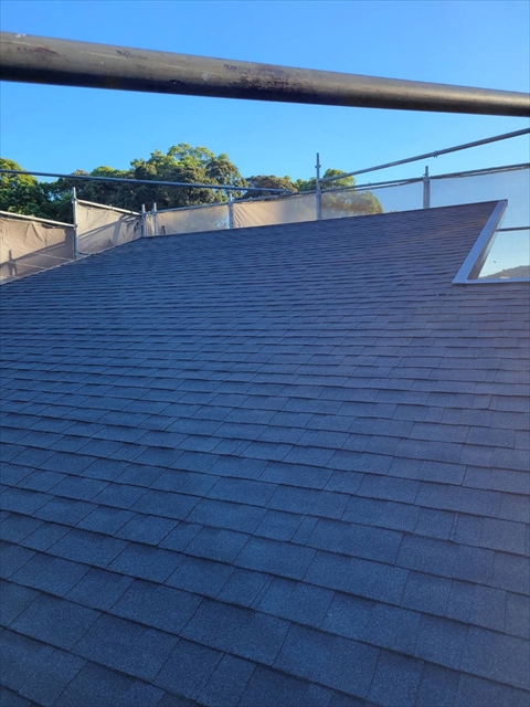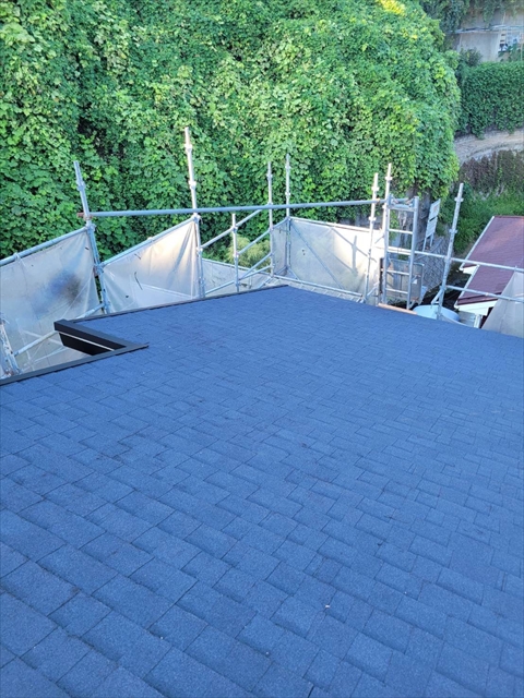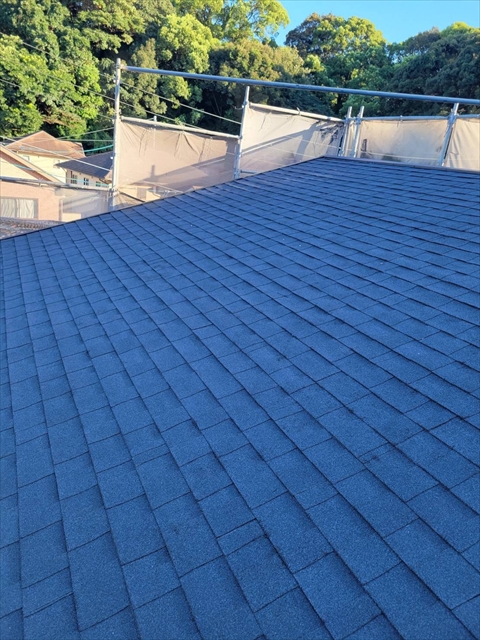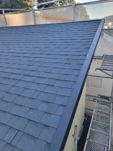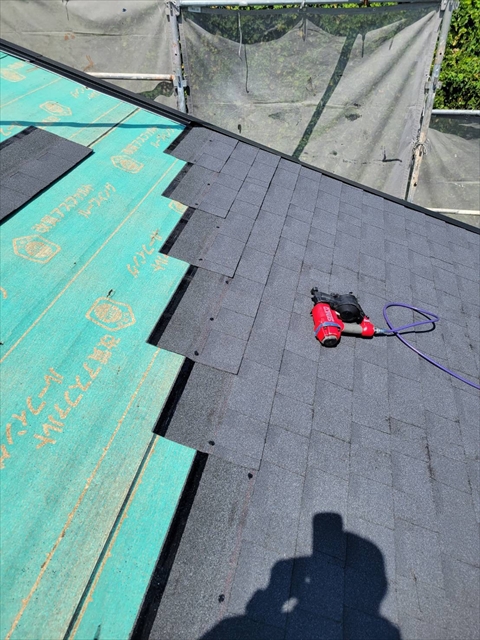 本日は2Fアスファルトシングル葺き、棟板金取付を行いました。