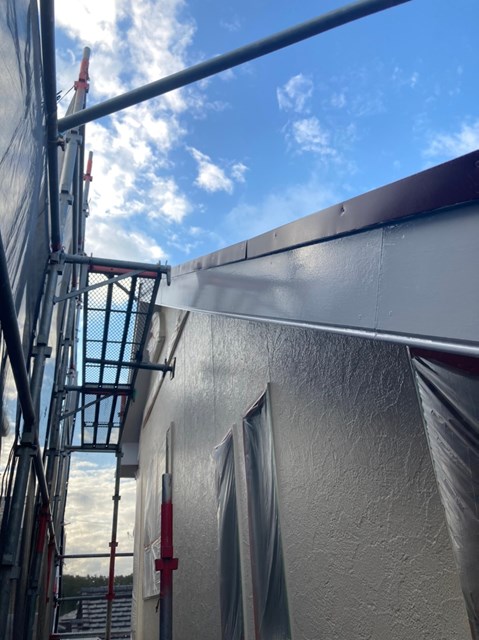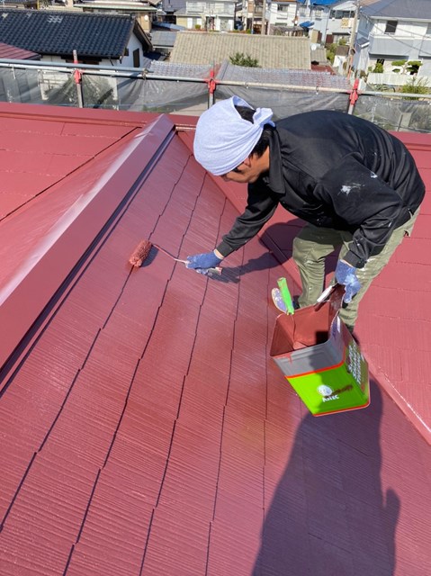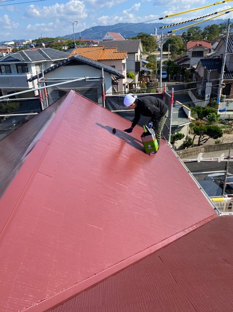 古賀市 K様邸 屋根中塗り 屋根上塗り 付帯部塗装 2020 10/31 2020年10月30日2020年10月31日 本日は大屋根の中塗り 大屋根の上塗り 付帯部塗装の続き を行いました。 塗り残しのないようにしっかりと塗って行き 本日で大屋根は上塗りまでが完了しました。 明日の作業は 引き続き付帯部塗装 養生の撤去 などを予定しています。 施工現場ブログ よかったらシェアしてね! URLをコピーしました! URLをコピーしました!