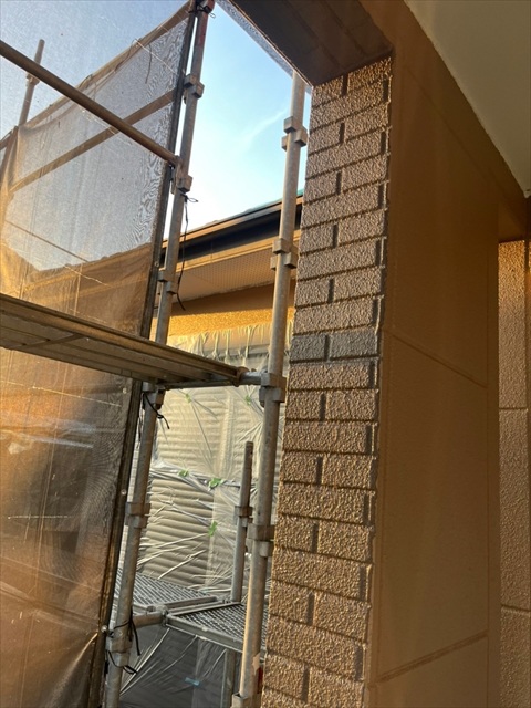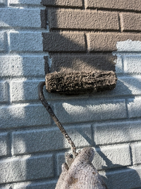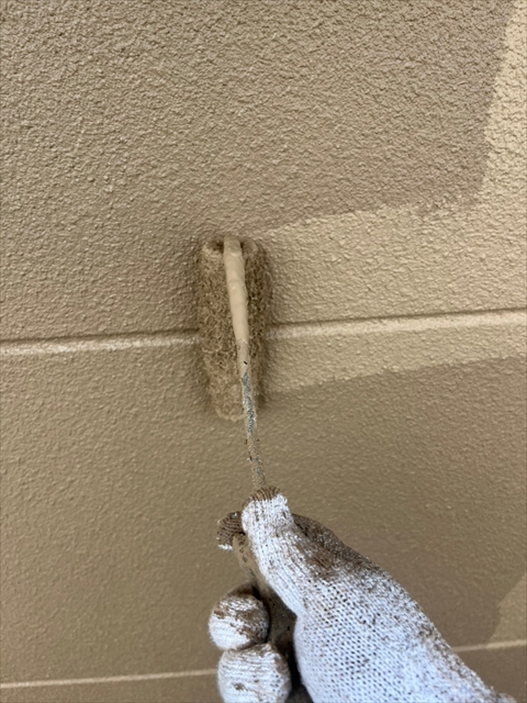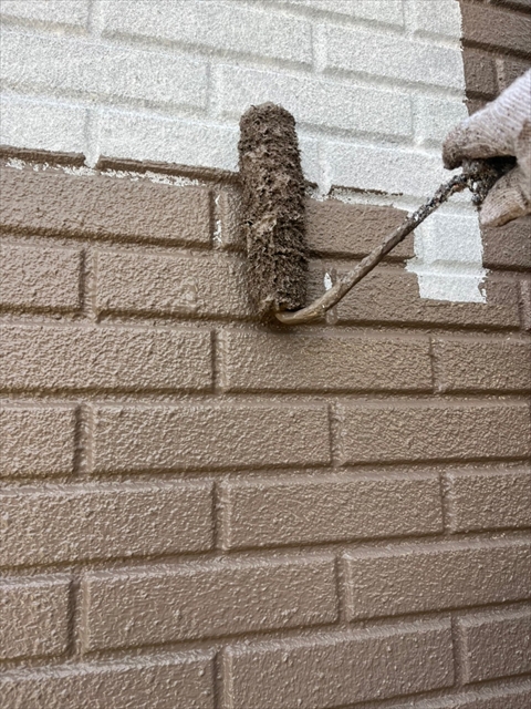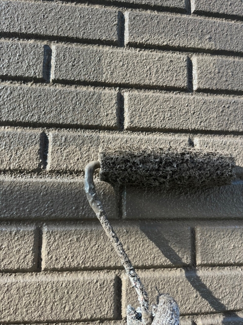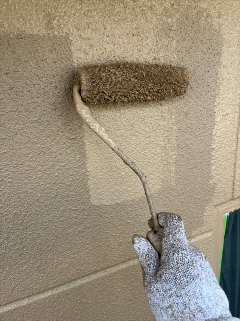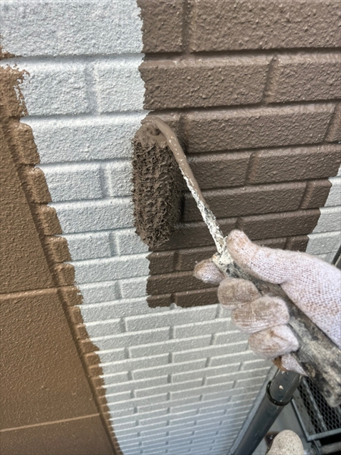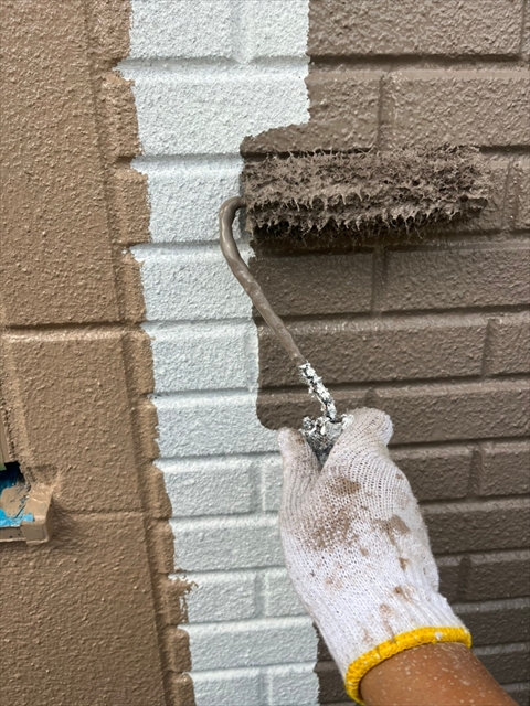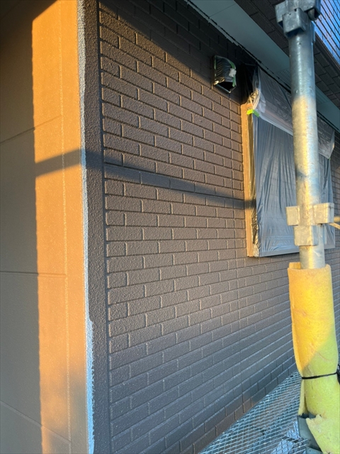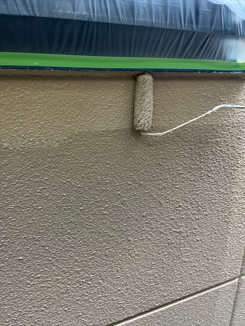 [宇美町 I様邸] 外壁の上塗り アクセント部の中塗り