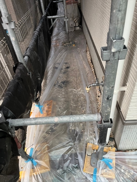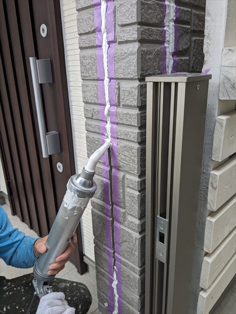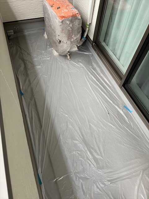 本日はシーリング打ち替え、土間等の養生を行いました。