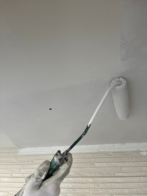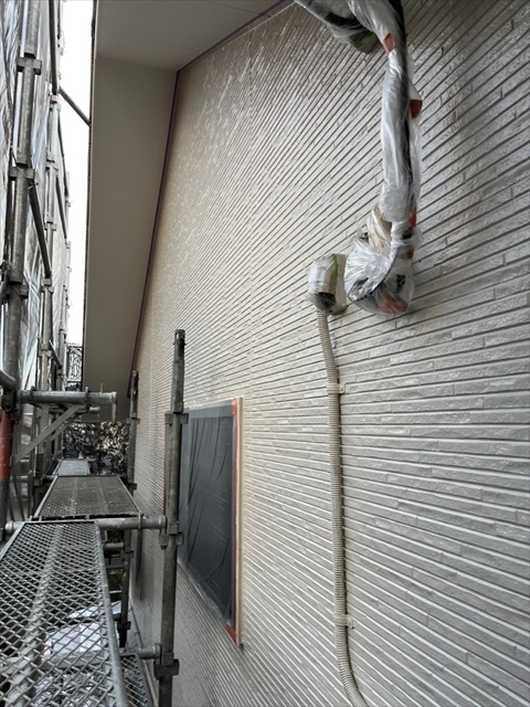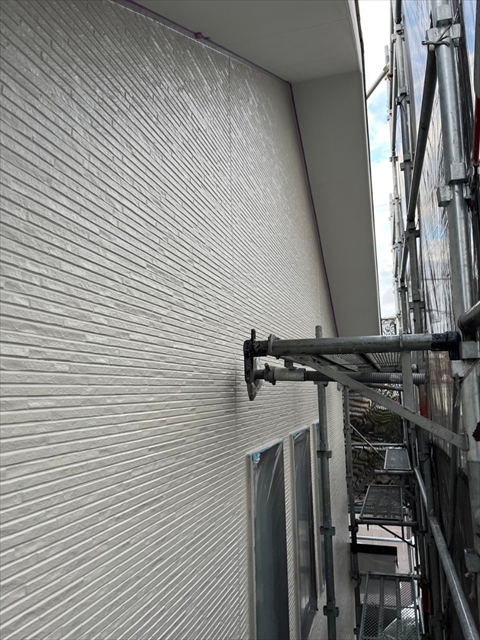 本日は軒天塗装、メイン箇所、外壁の中塗りを行いました。