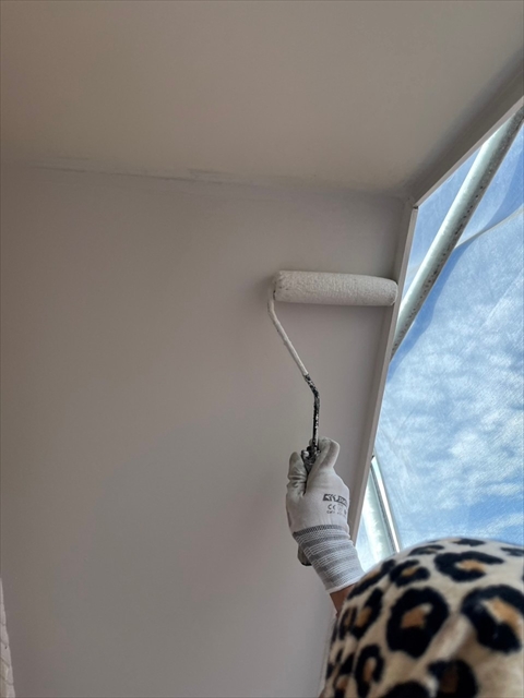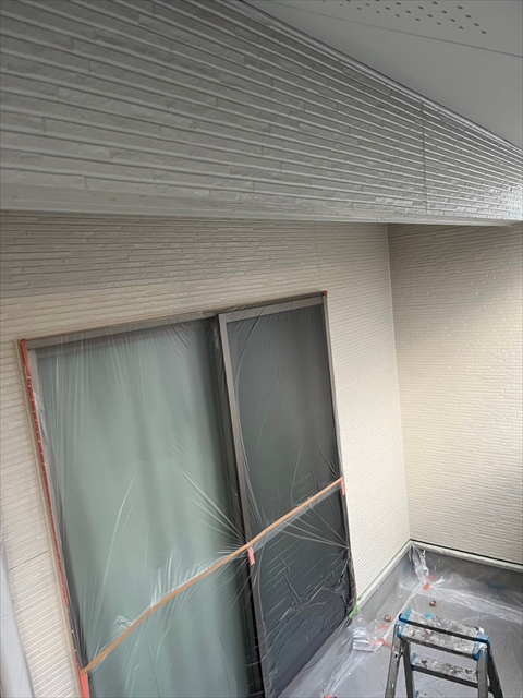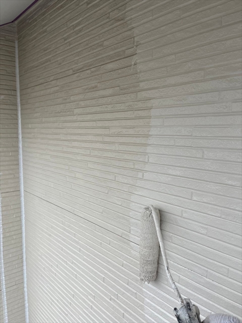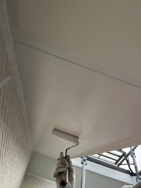 [春日市 K様邸] 軒天塗装 メイン箇所 外壁の中塗り