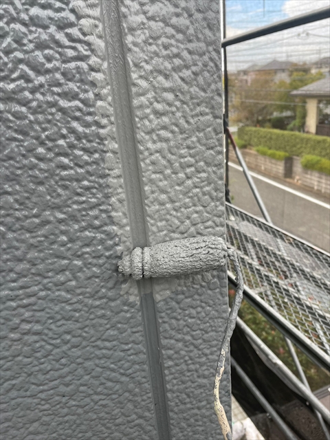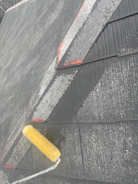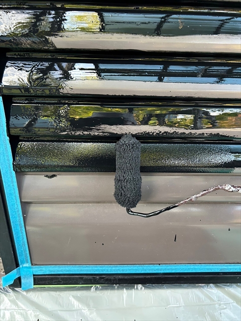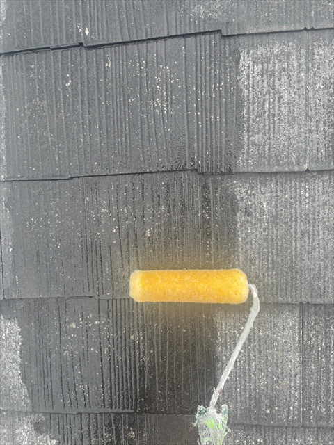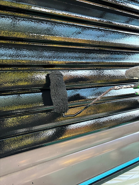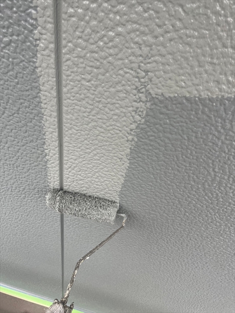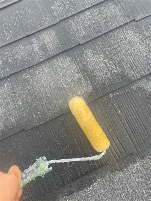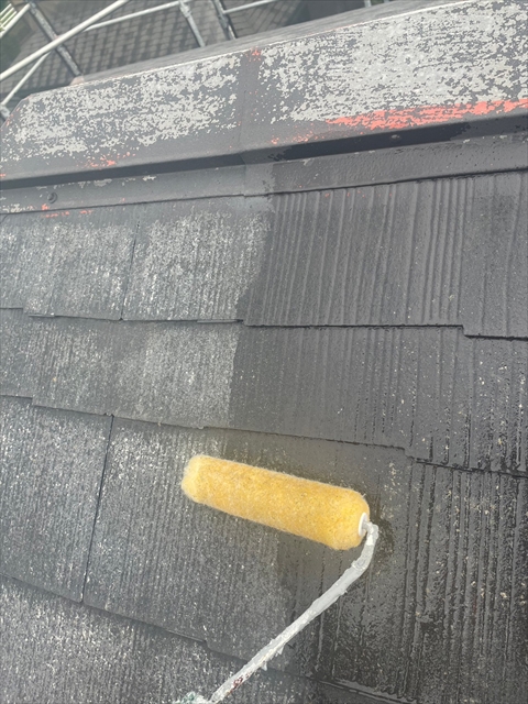 本日は壁の上塗り、屋根の下塗り、付帯部塗装を行いました。