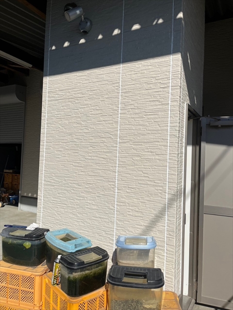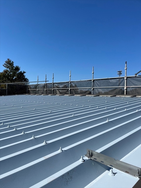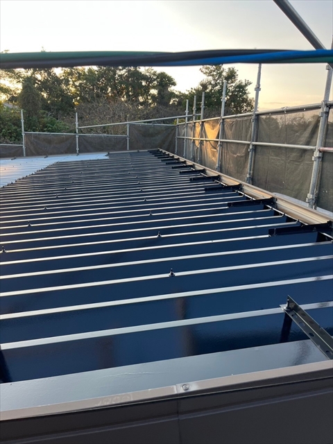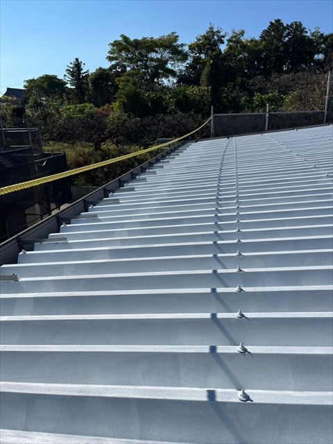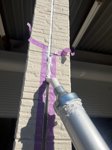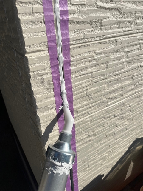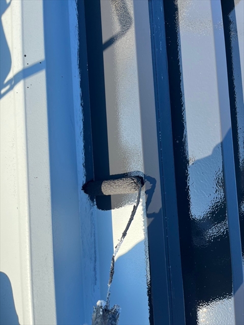 本日は倉庫箇所のシーリング打ち替え、屋根の下塗り・一部中塗りを行いました。