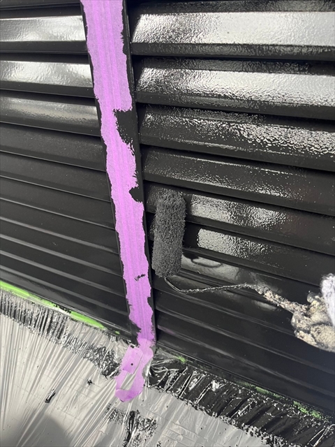 本日は屋根の上塗り、雨戸の塗装を行いました。