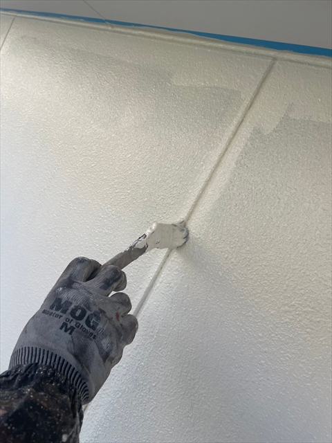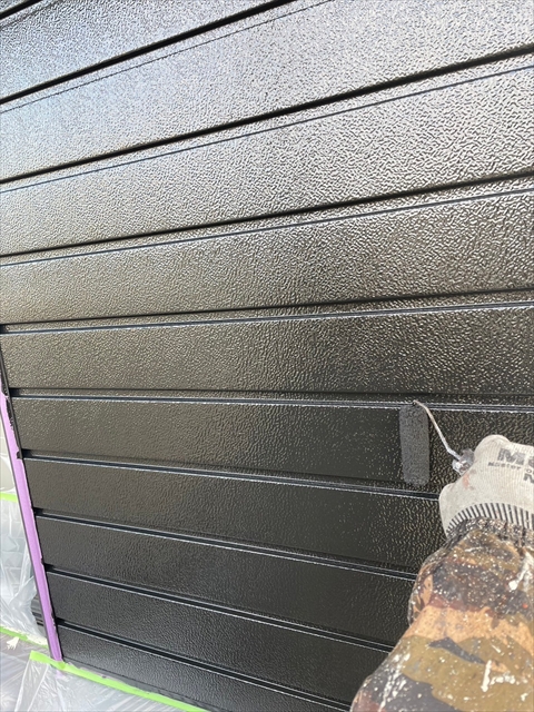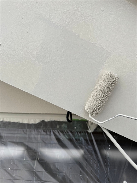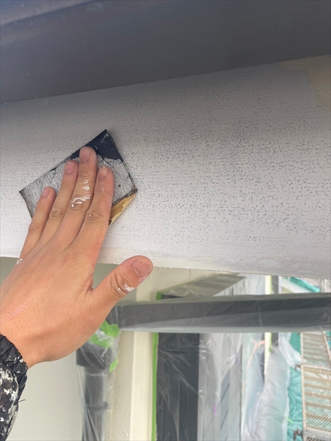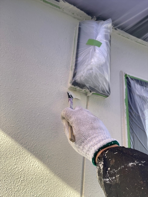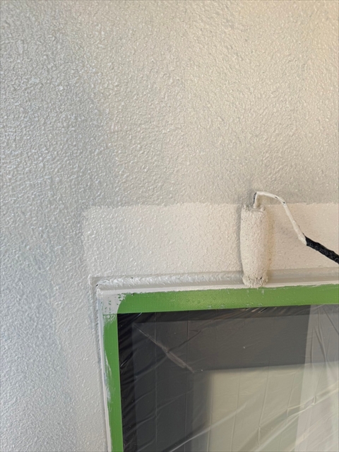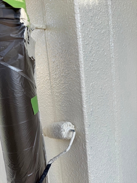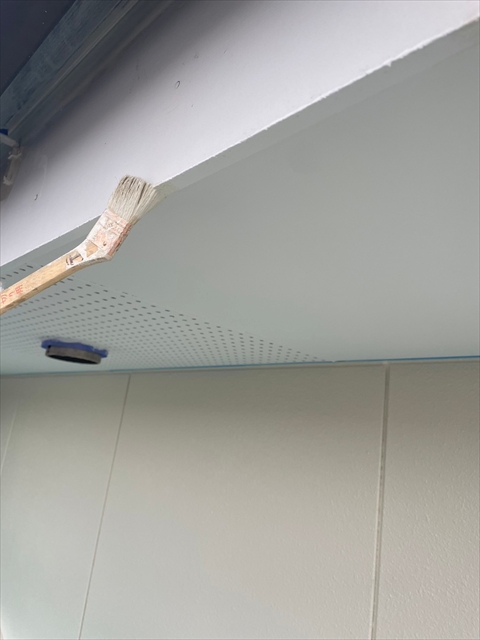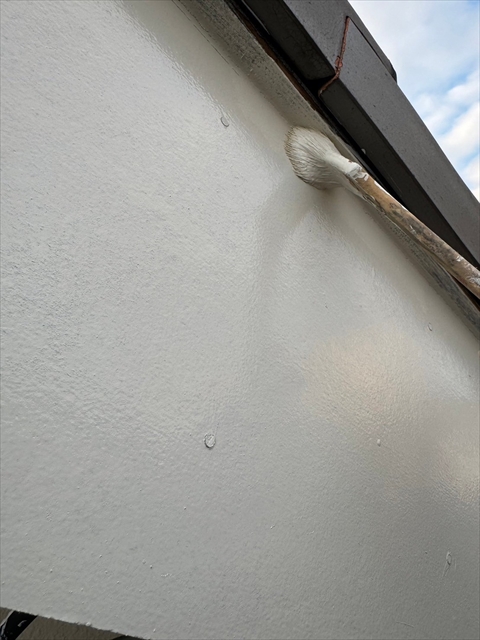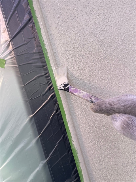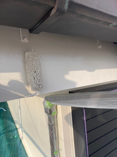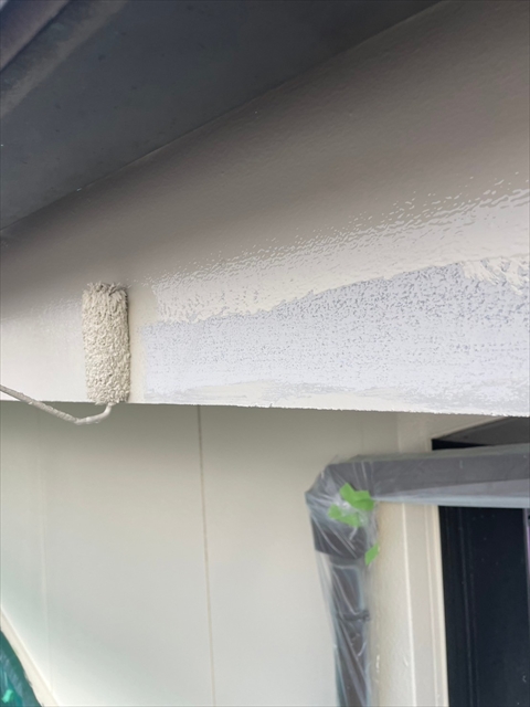 本日は壁の中塗り・上塗り、付帯部塗装、養生バラシを行いました。