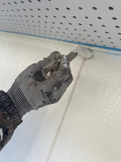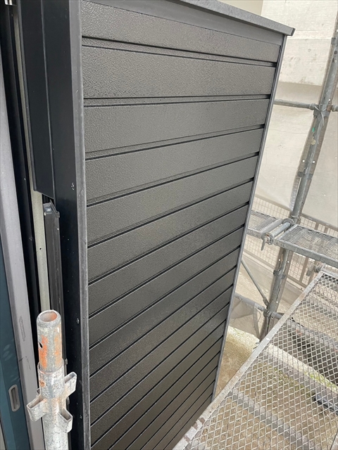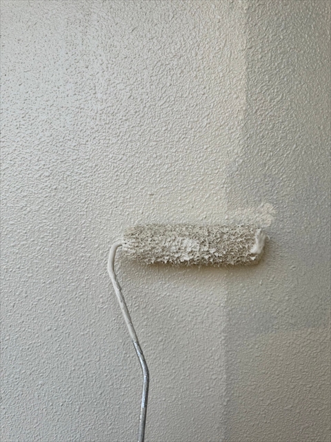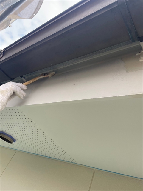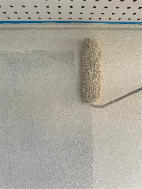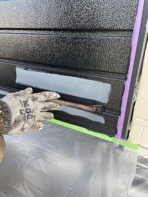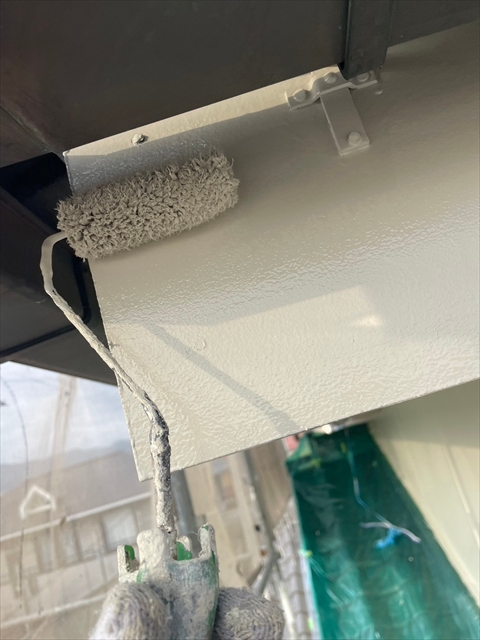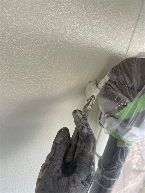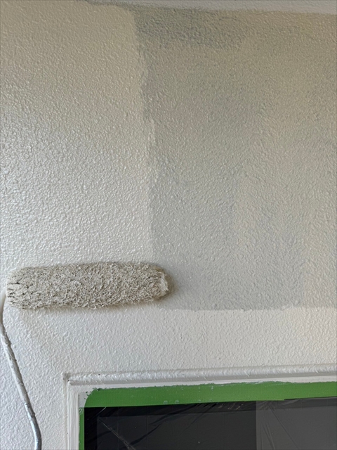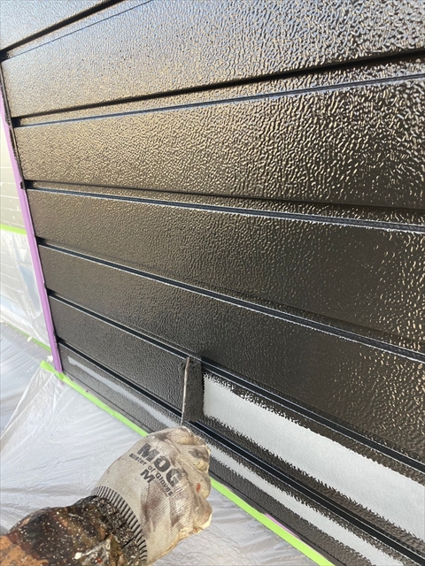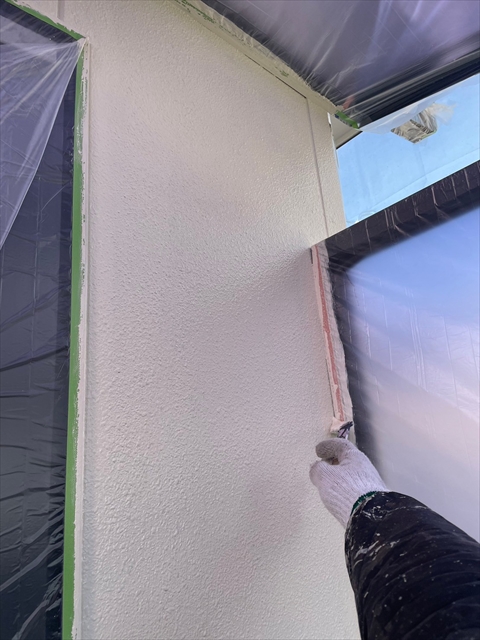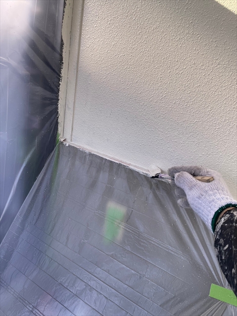 本日は壁の中塗り・上塗り、付帯部塗装、養生バラシを行いました。