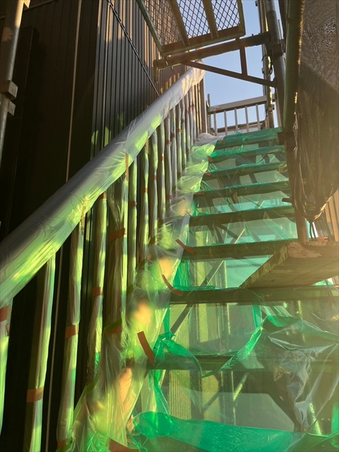 本日は養生、付帯部塗装を行いました。