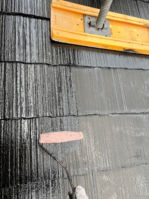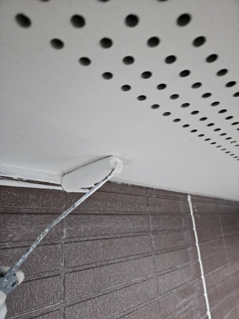 本日は軒天塗装、外壁の中塗り、屋根の下塗りを行いました。