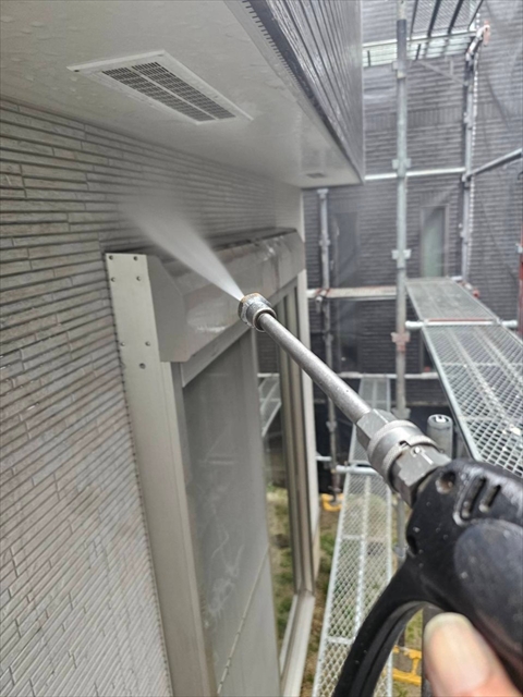 本日は高圧洗浄とシーリング撤去を行いました。
