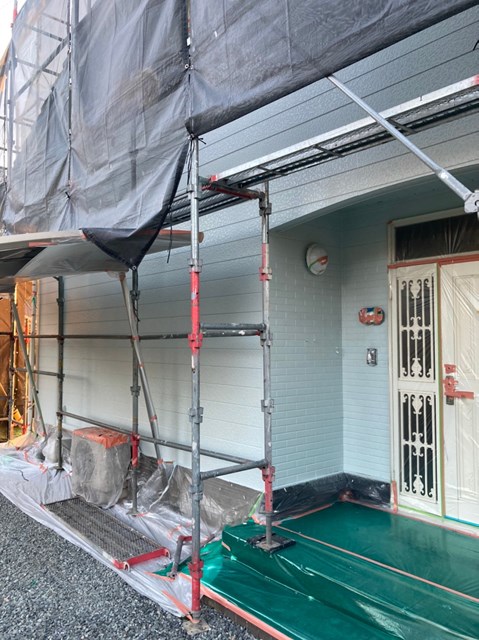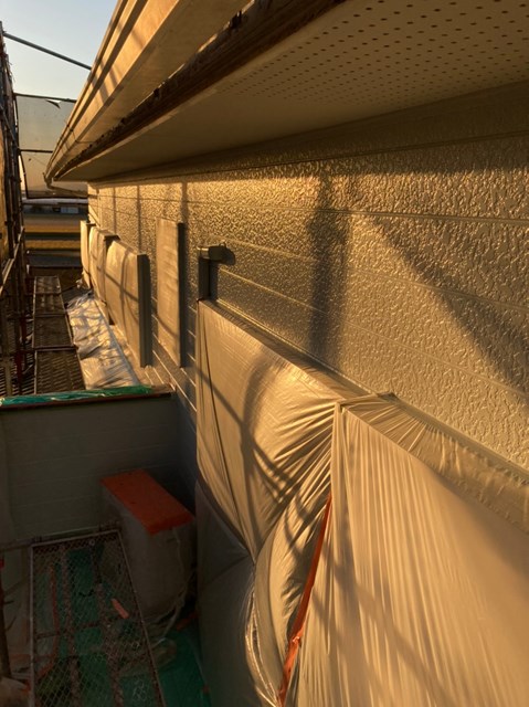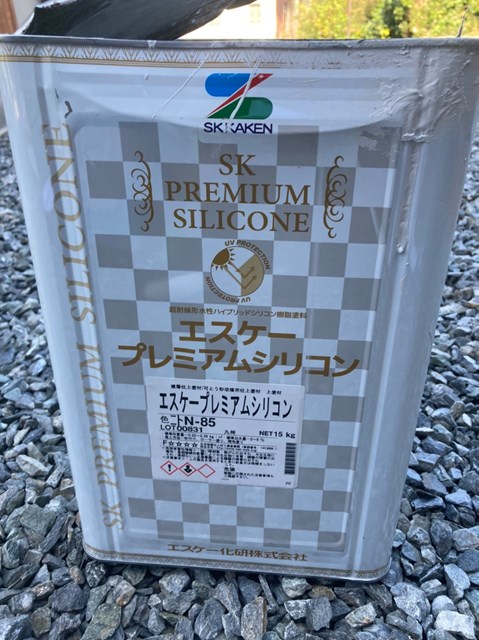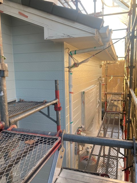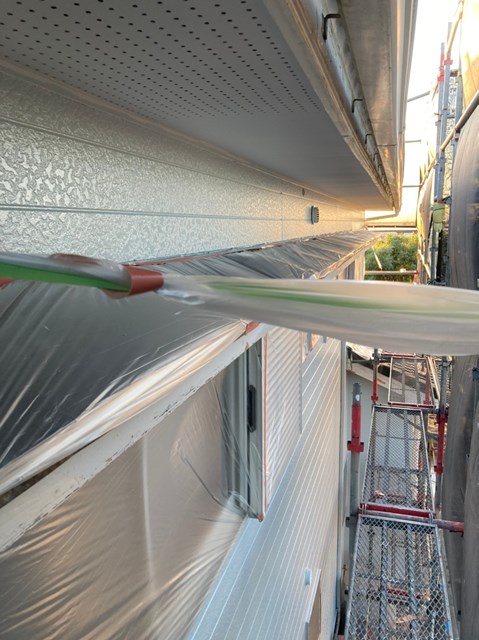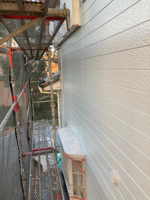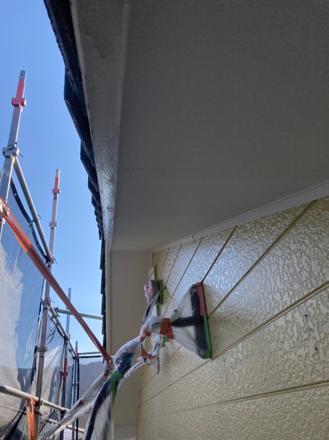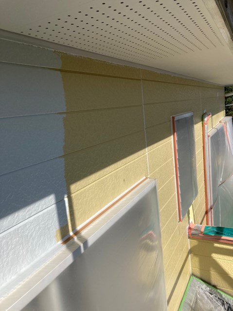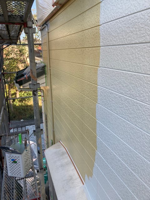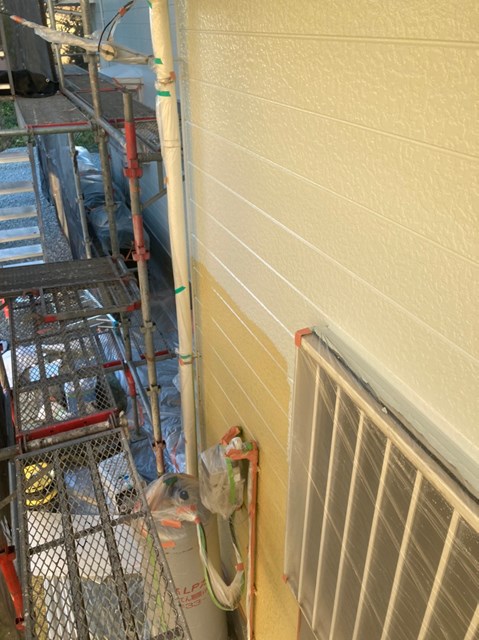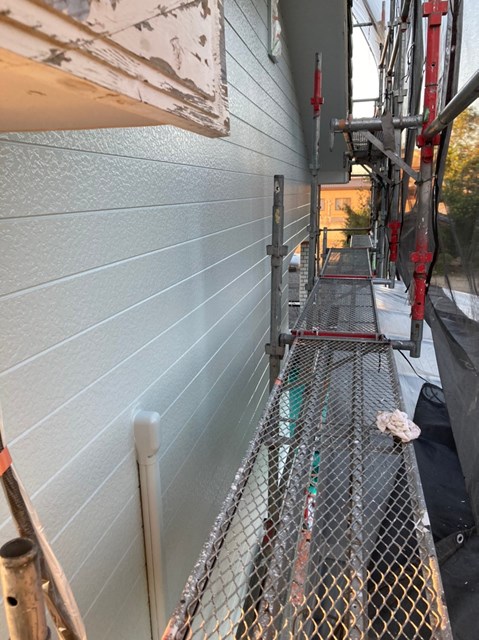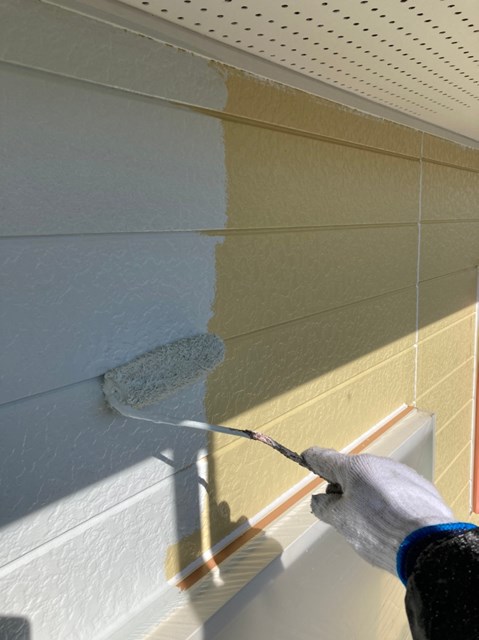 中塗りは上塗りの際に塗り残しを無くす為に、色替え工法で施工しており上塗りよりも少し明るい色で施工しました。