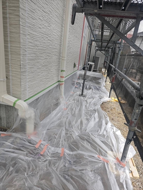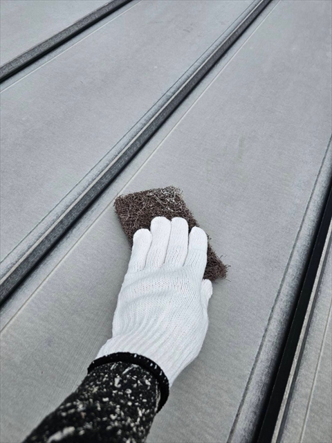 本日はシーリング打替、土間養生、屋根のケレン作業を行いました。