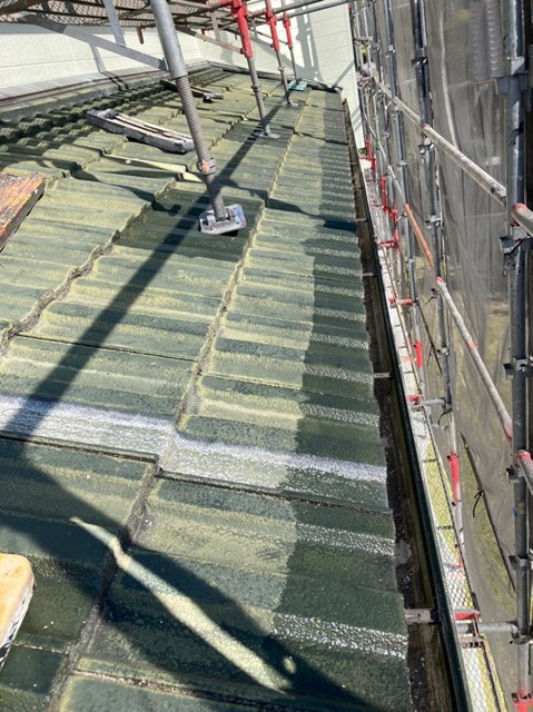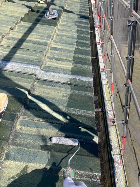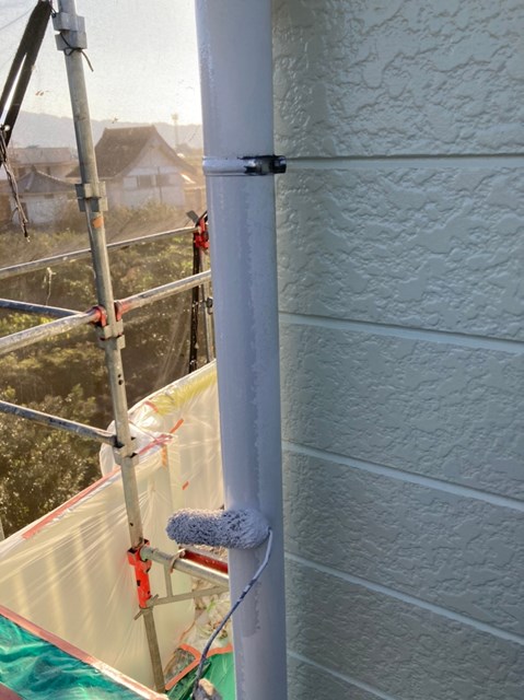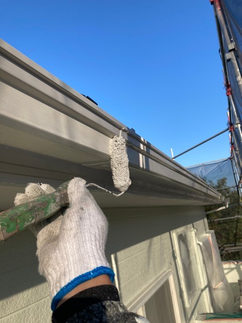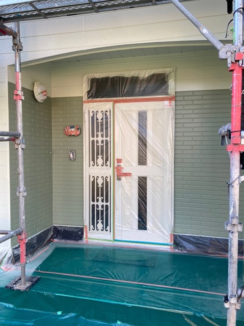 久留米市 N様邸 玄関色替え箇所 上塗り 屋根一部 下塗り 付帯部塗装 破風板補修