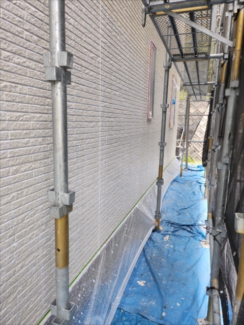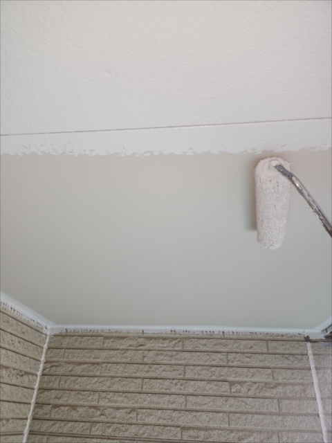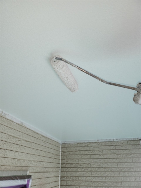 本日は軒天の上塗りを行いました。