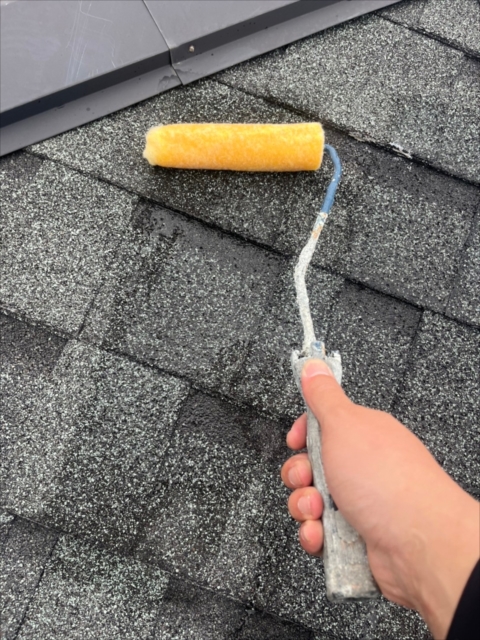 本日は軒天の上塗り、屋根の下塗りを行いました。