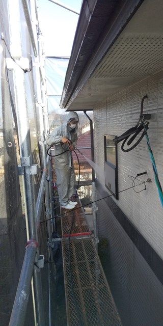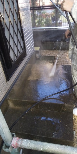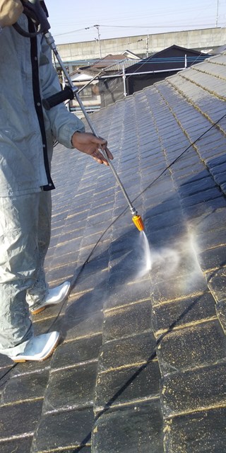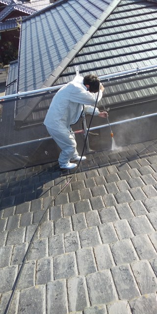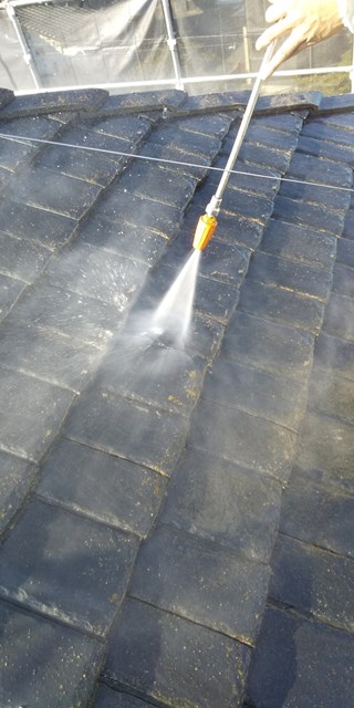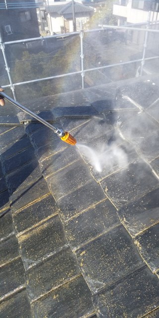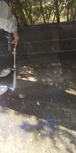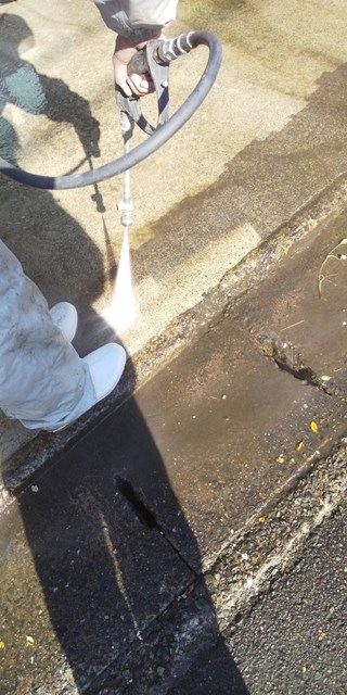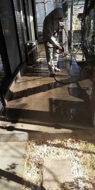 屋根、外壁、土間ともに高圧洗浄で落とせる範囲でしっかりと洗浄しました。