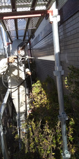 コーキング撤去、打ち替えに伴う養生作業を予定しています。