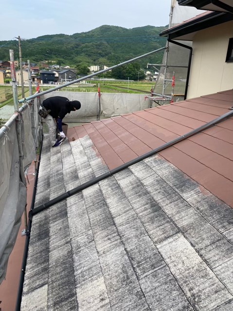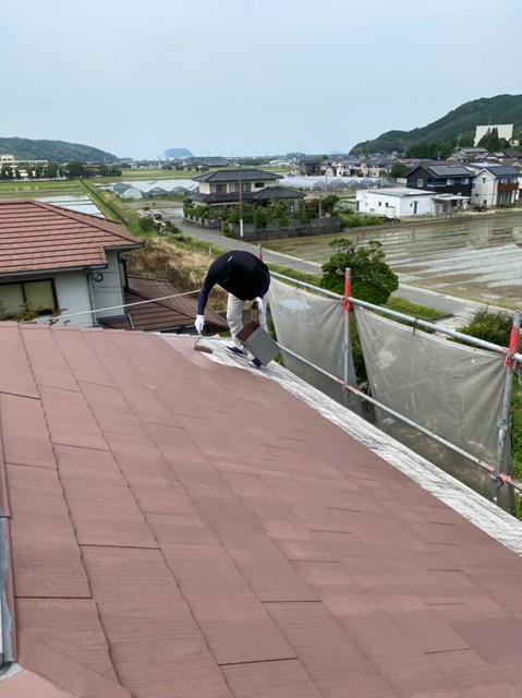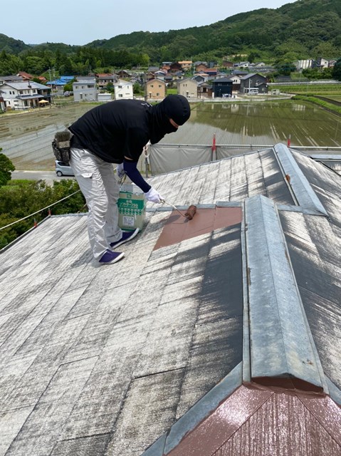 唐津市 N様邸 屋根下塗り 雨戸塗装