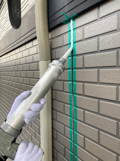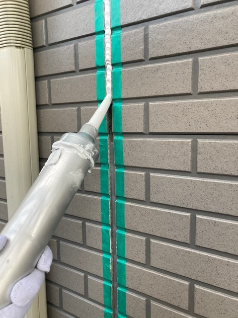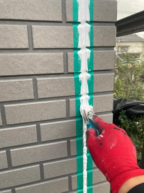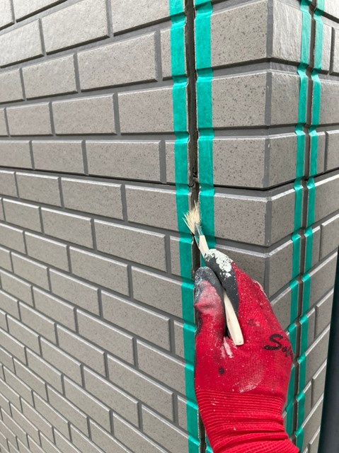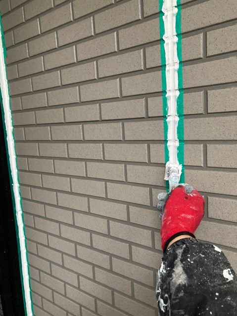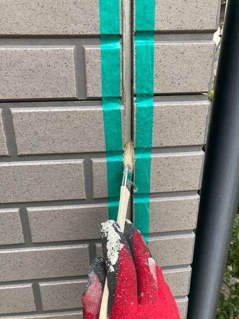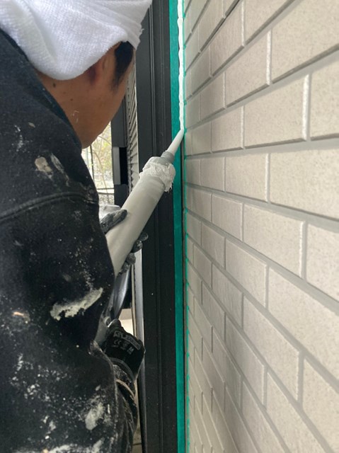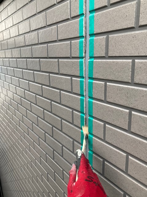 密着性を高めてからコーキングの打ち替え作業を行いました。