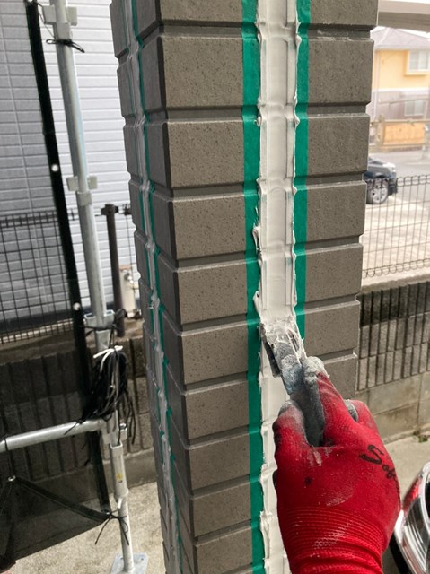 本日はコーキングの撤去、打ち替え作業を行いました。