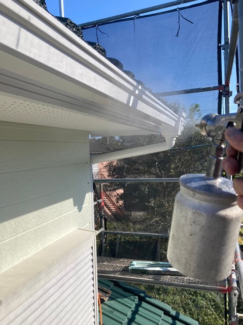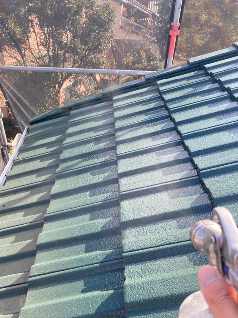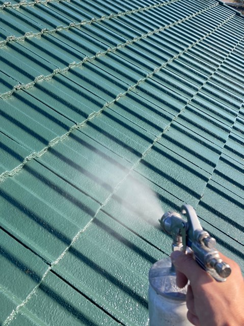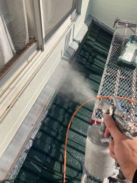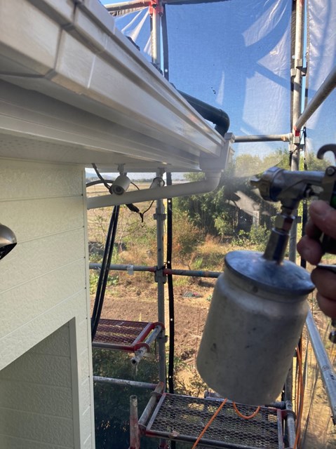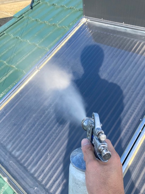 外壁、屋根にも専用の可視光線型光触媒を隈なくコーティングしていきました。