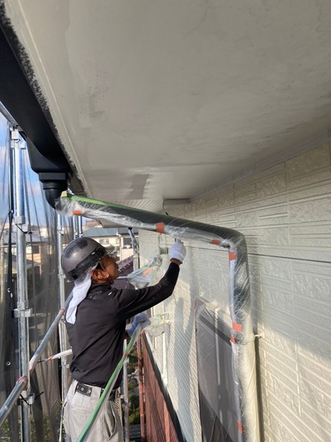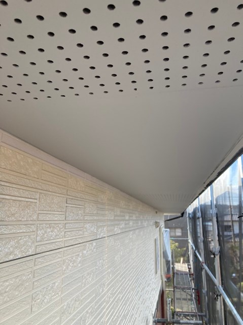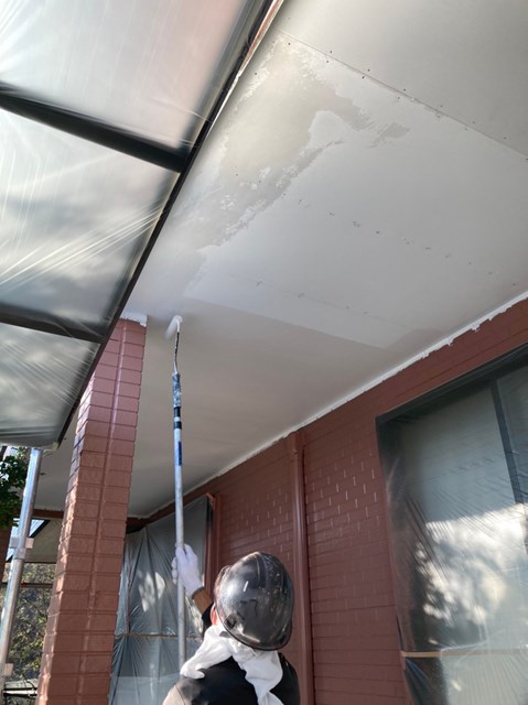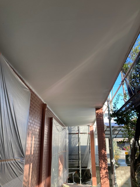 それから水性ケンエースを使用して軒天塗装も行いました。