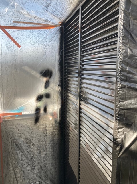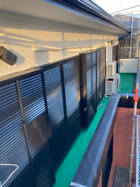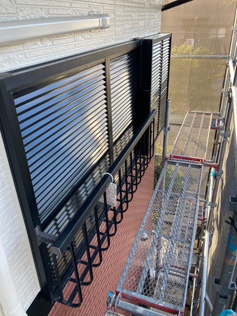 引き続き、手直し、タッチアップ、水切りなどの付帯部塗装、バルコニー防水