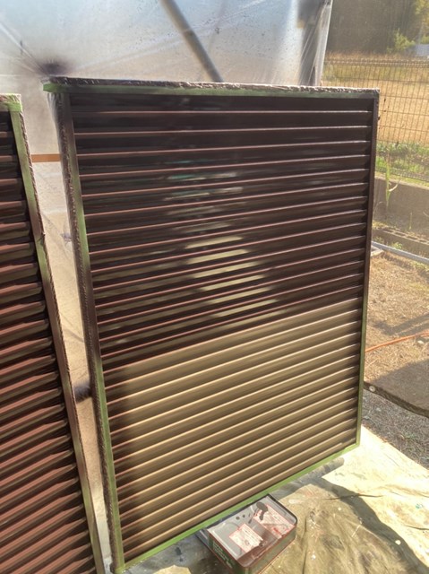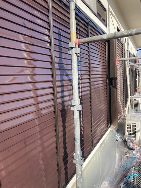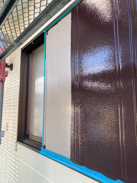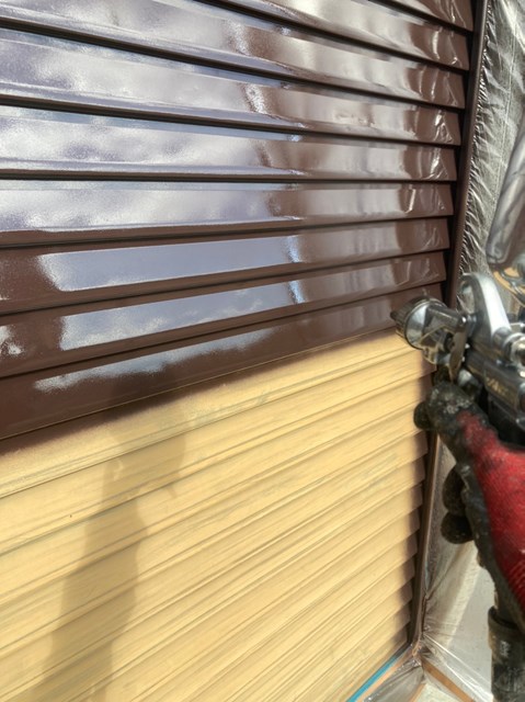 雨戸はしっかりとケレン作業を行なった後に吹き付け塗装を行いました。