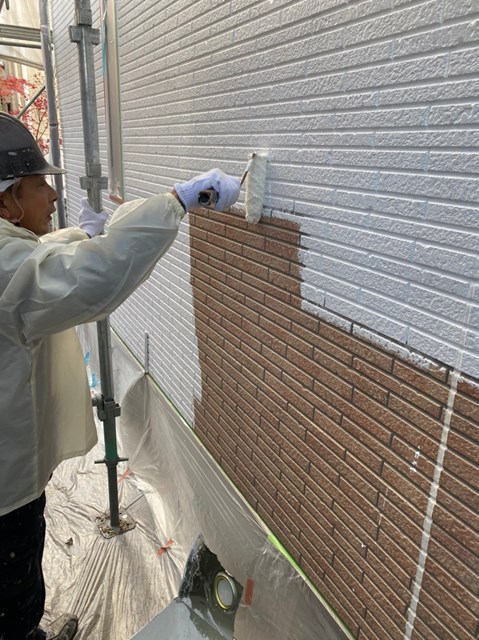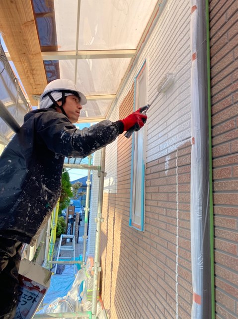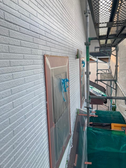 続きまして、外壁の下塗りを行いました。