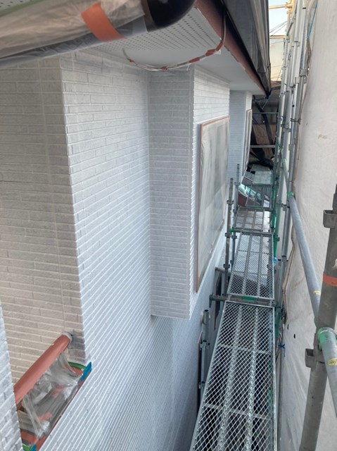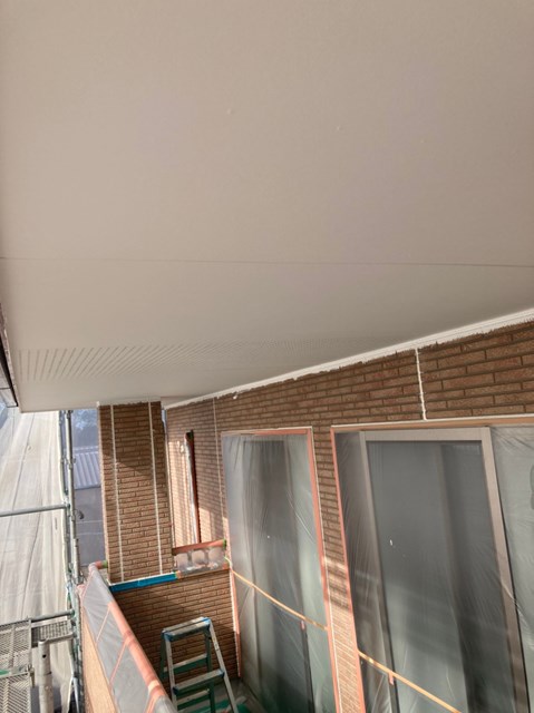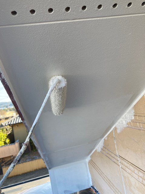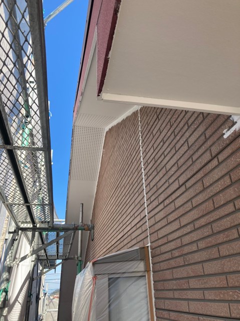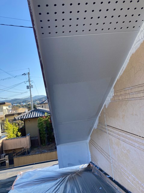 細かなタッチアップを除き軒天塗装は完了です。