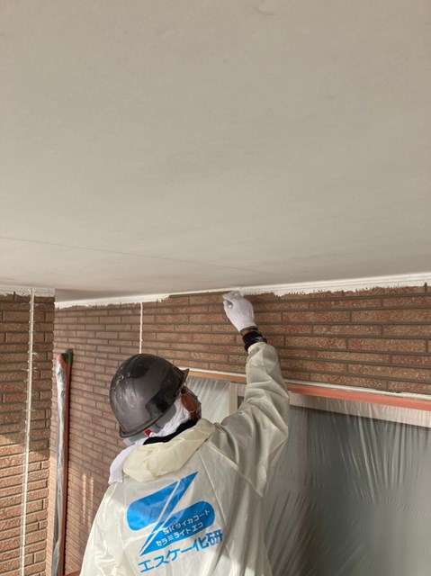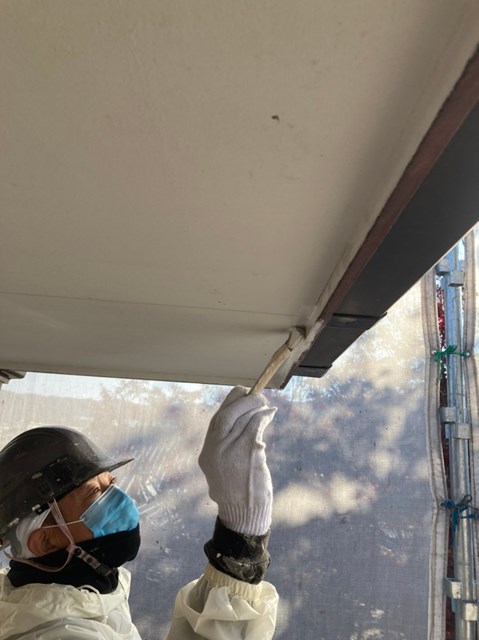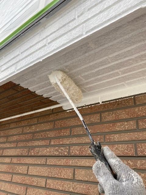 本日はまず軒天塗装を行いました。