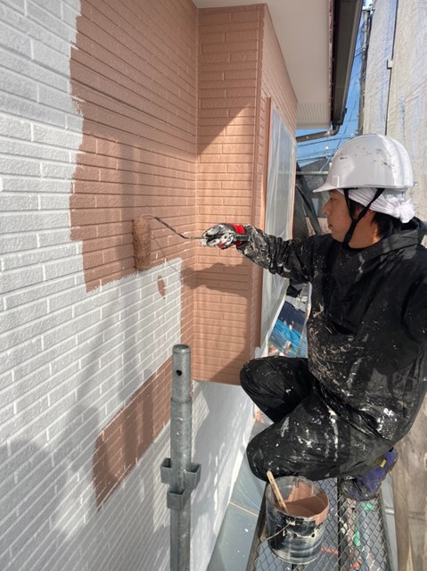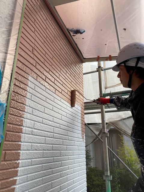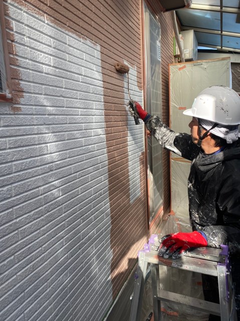 本日は外壁の中塗りを行いました。