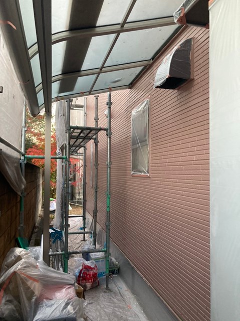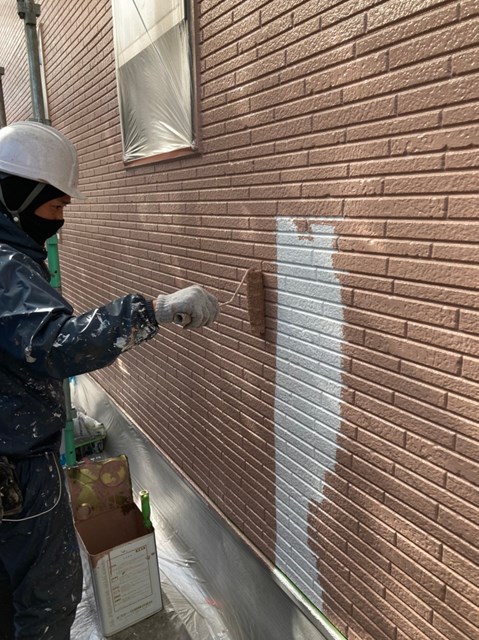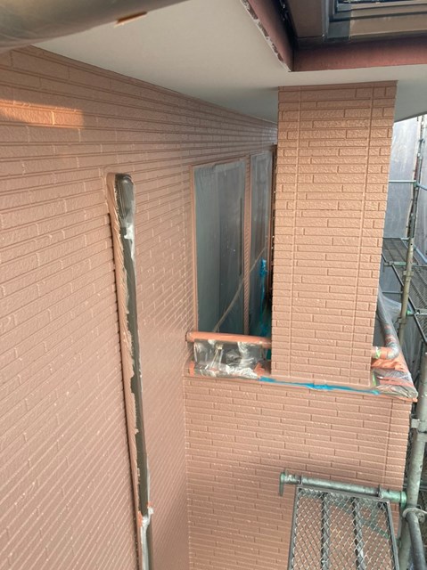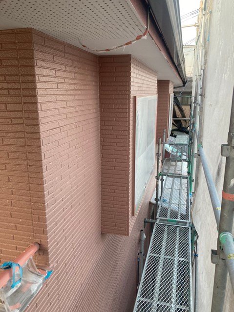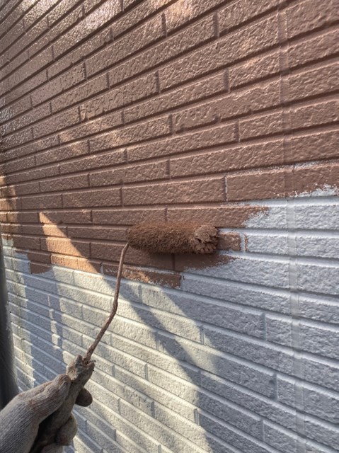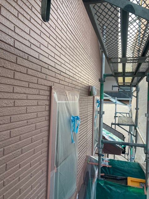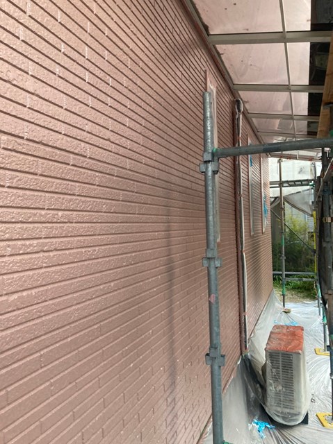 茶色のサイディングの中塗りは完了しております。