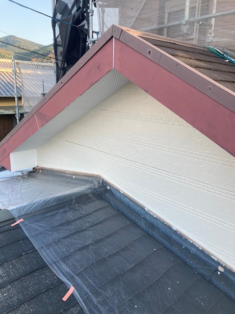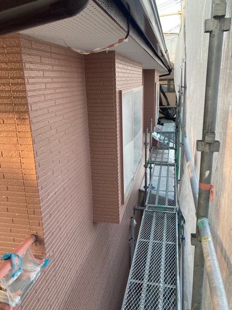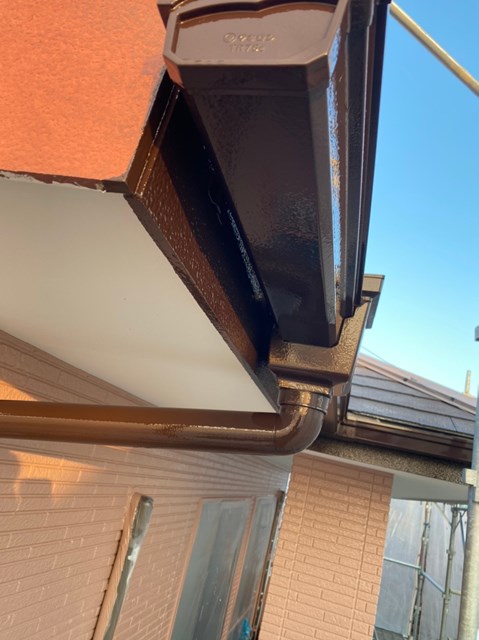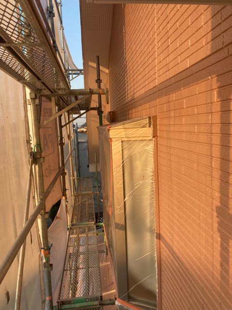 明日の作業予定は付帯塗装、オレンジ色のサイディングの隙間補修・上塗り、屋根の下塗りなどを行う予定です。