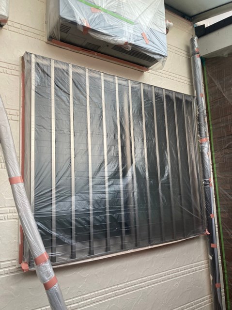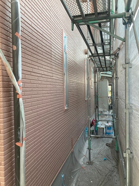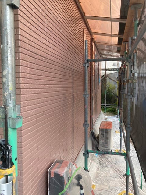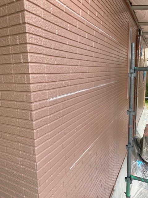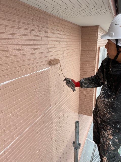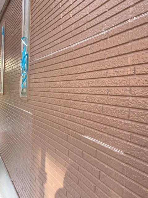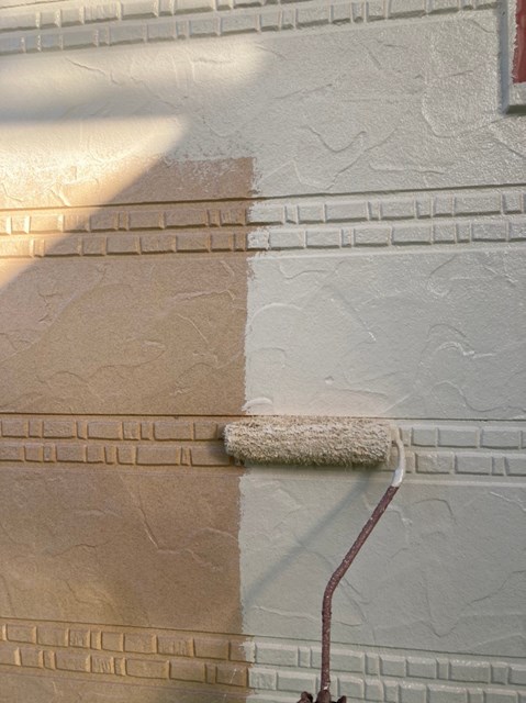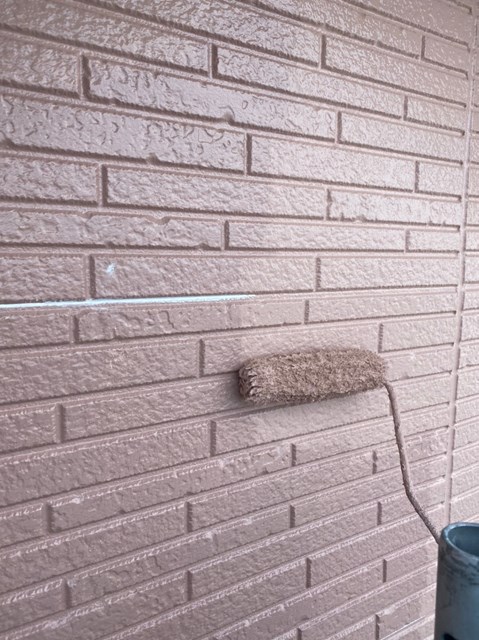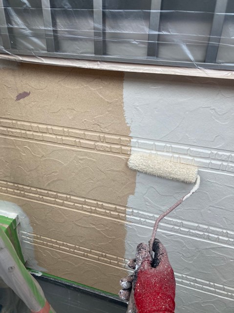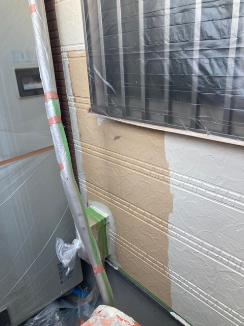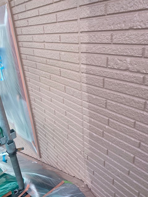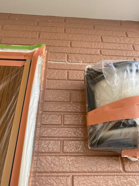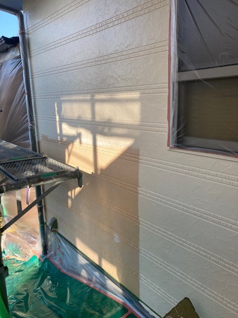 それからオレンジ色のサイディングも先日と同様に、プレミアムシリコンを色変え工法により中塗りを塗りました。