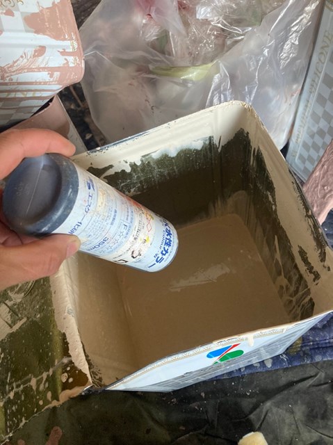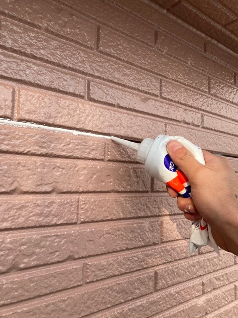 本日は昨日に引き続き外壁の隙間補修を行いました。